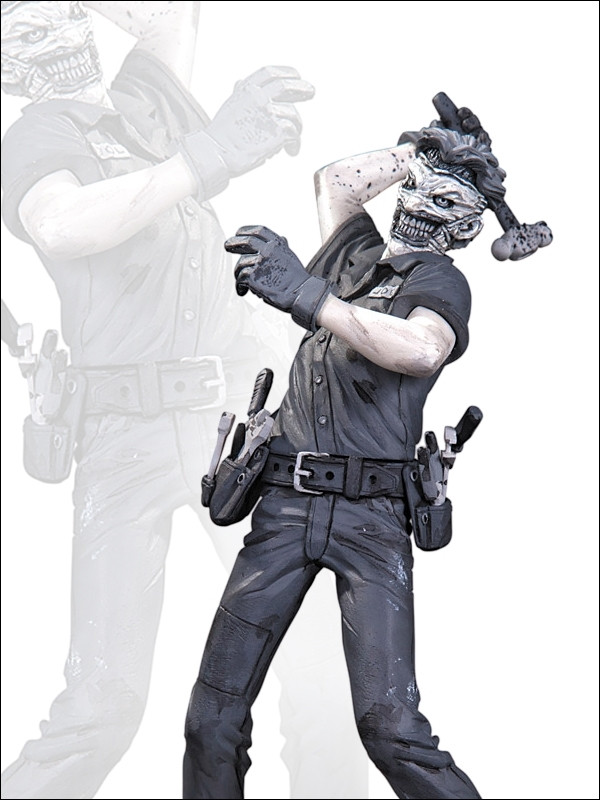 Fan-favorite artist Greg Capullo’s frightening rendition of The Clown Prince of Crime from the best-selling BATMAN: DEATH OF THE FAMILY storyline is now added to the best-selling line of statues spotlighting The Dark Knight and his Rogues Gallery of Villains. Sculpted by Jonathan Matthews, this statue measures approximately 8.2″ high x 4.75″ wide x 3″ deep.