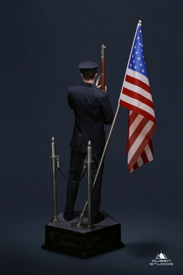 Similarly, to Queen Studios other hyper-realistic statues. The realism of this statue is what makes it a must for DC and The Dark Knight fans alike. The statue is of life-like resemblance of Heath Ledger’s Oscar-winning performance as The Joker in 1/3 scale. This Queen Studios statue captures the Joker moments before he shoots Commissioner Gordon in plain daylight at Gotham’s City Hall. The Joker is bare faced, disguised as a police officer, his scars are naturally visible, and he is carrying a standard police issue M1 Garand semi-automatic rifle.