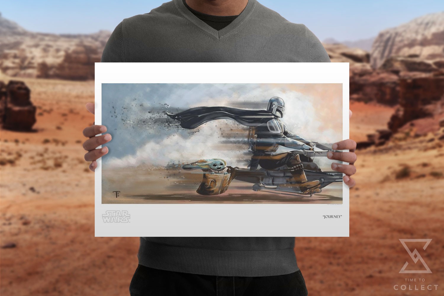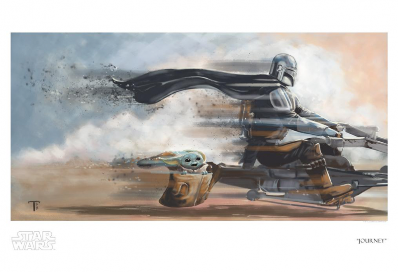 This artwork is inspired by Star Wars: The Mandalorian. This giclee comes hand-numbered and with a certificate of authenticity.