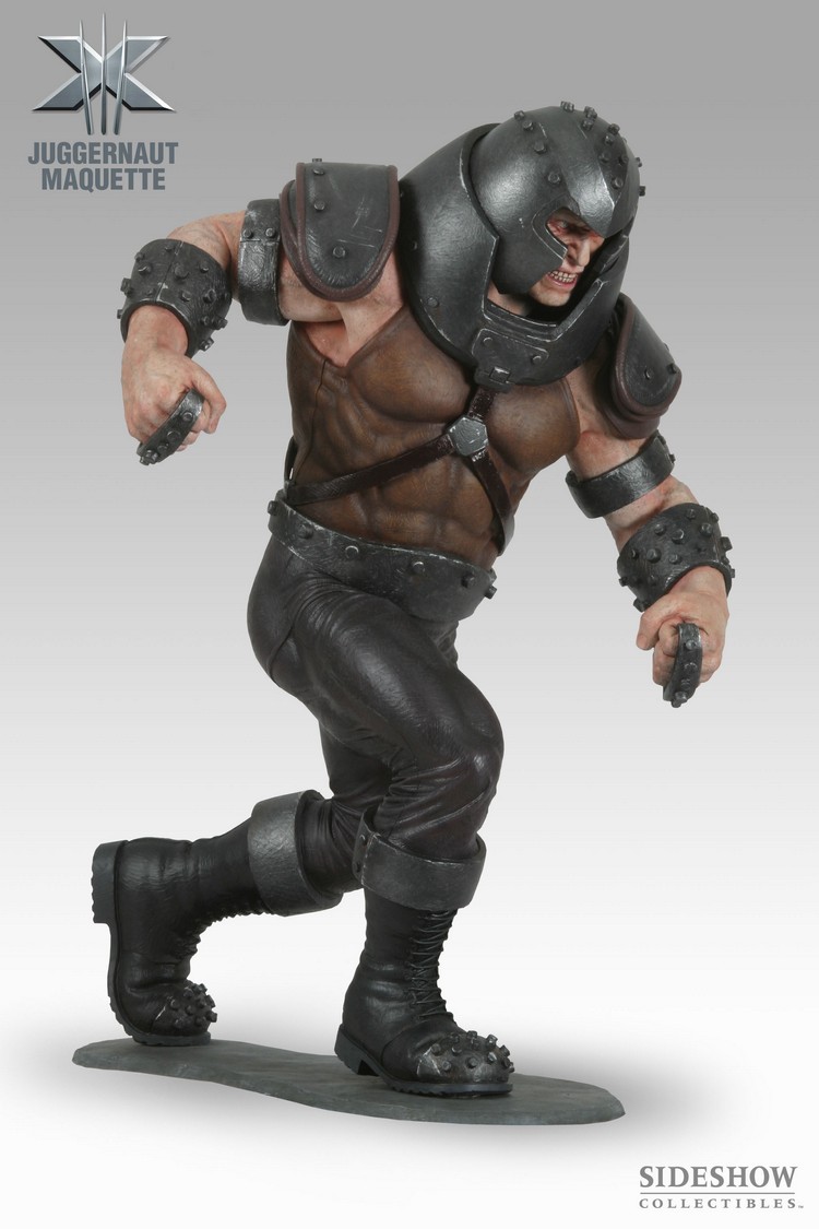 Sideshow Collectibles and Spectral Motion present the Juggernaut Maquette fromĀ X-Men: The Last Stand, a reproduction of the original maquette created during pre-production work on the film. Spectral Motion created both the armor and muscle suit worn by actor Vinny Jones. The team at Spectral Motion sough a design that retained the most iconic elements of Juggernaut’s comic-based appearance, while providing a more functional purpose to the helmet and armor. In this design, you can see that the helmet has two separate elements, so that Juggernaut can turn his armored noggin, something the comic design does not permit.
