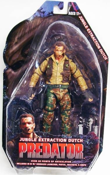 The 8th Series in the #1 selling Predator collection celebrates the 25th Anniversary of the original 1987 Predator film with the long awaited and much anticipated debut of Arnold Schwarzengger as Dutch Schaefer! For the first time the hero joins the line and is presented in 2 different versions.