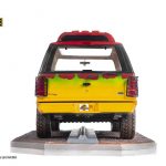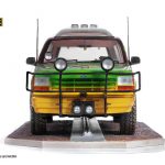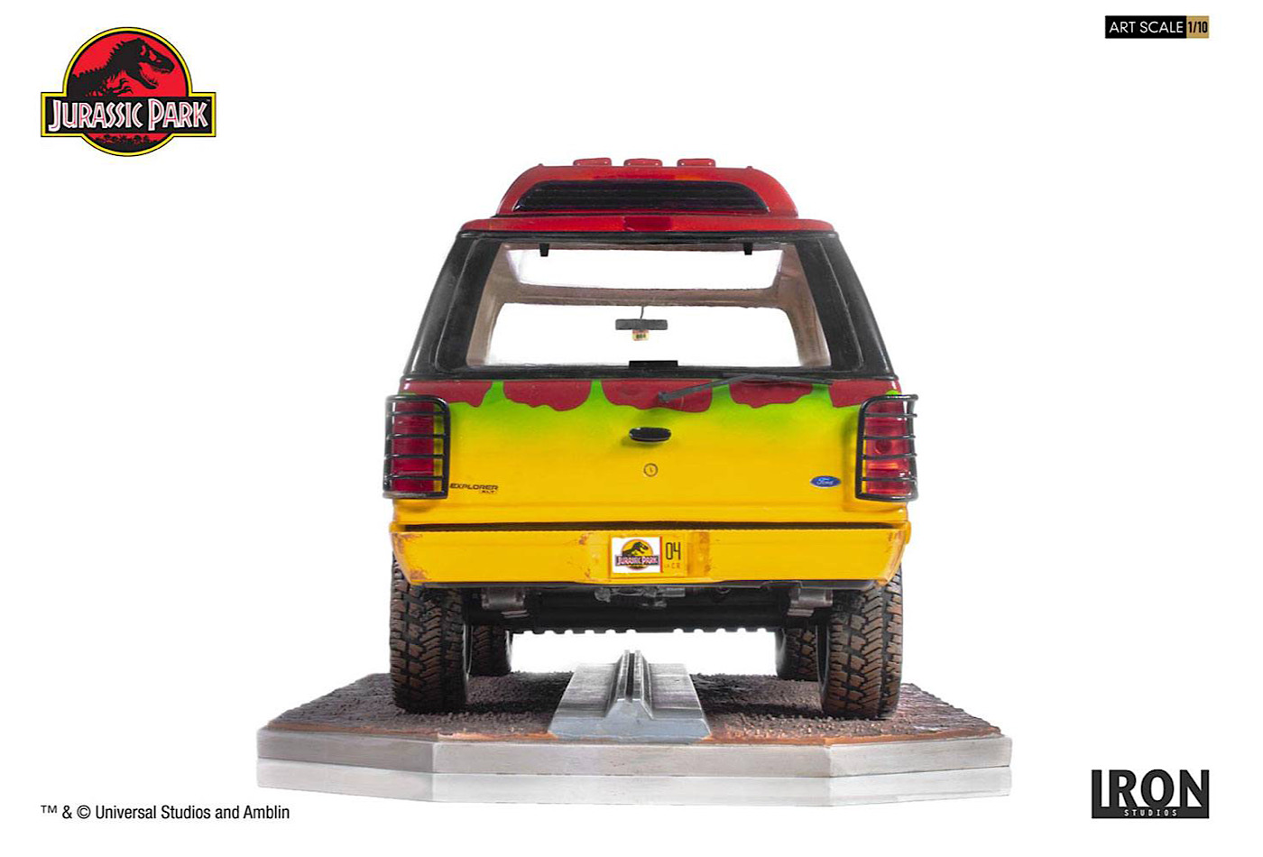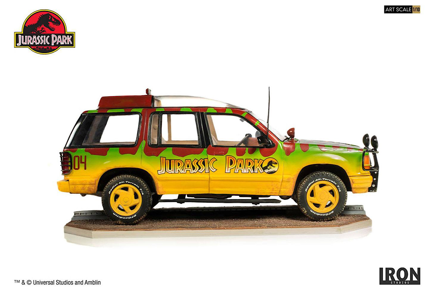 One of the most striking scenes, when the fearsome Tyrannosaurus Rex breaks through containment and comes face to face with the first visitors to the theme park, is masterfully replicated by Iron Studios in Jurassic Park\’s Art Scale 1/10 Battle Diorama Series statues. Replica of the park\’s themed vehicle.