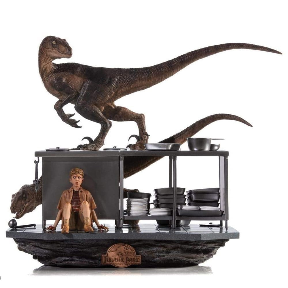 Iron Studios presents Velociraptors in the Kitchen Diorama Art Scale 1/10 Statue from Jurassic Park. This collectible statue is based on the original reference from the film. Our hand-painted collectible statues and toys are the best gift for yourself or loved ones.