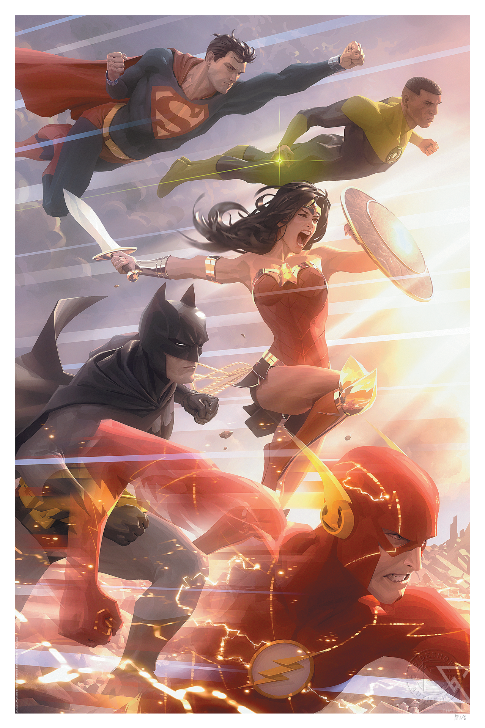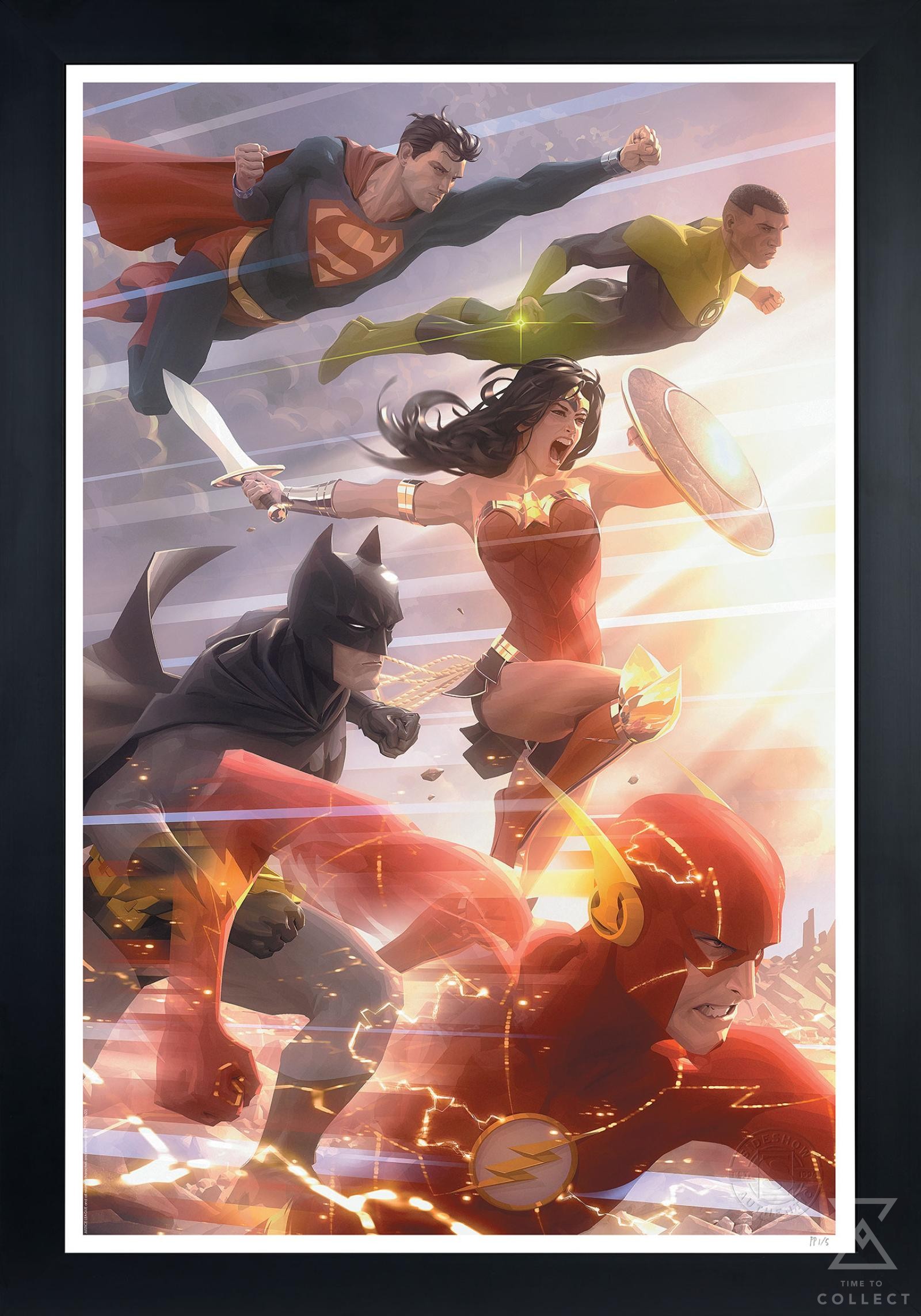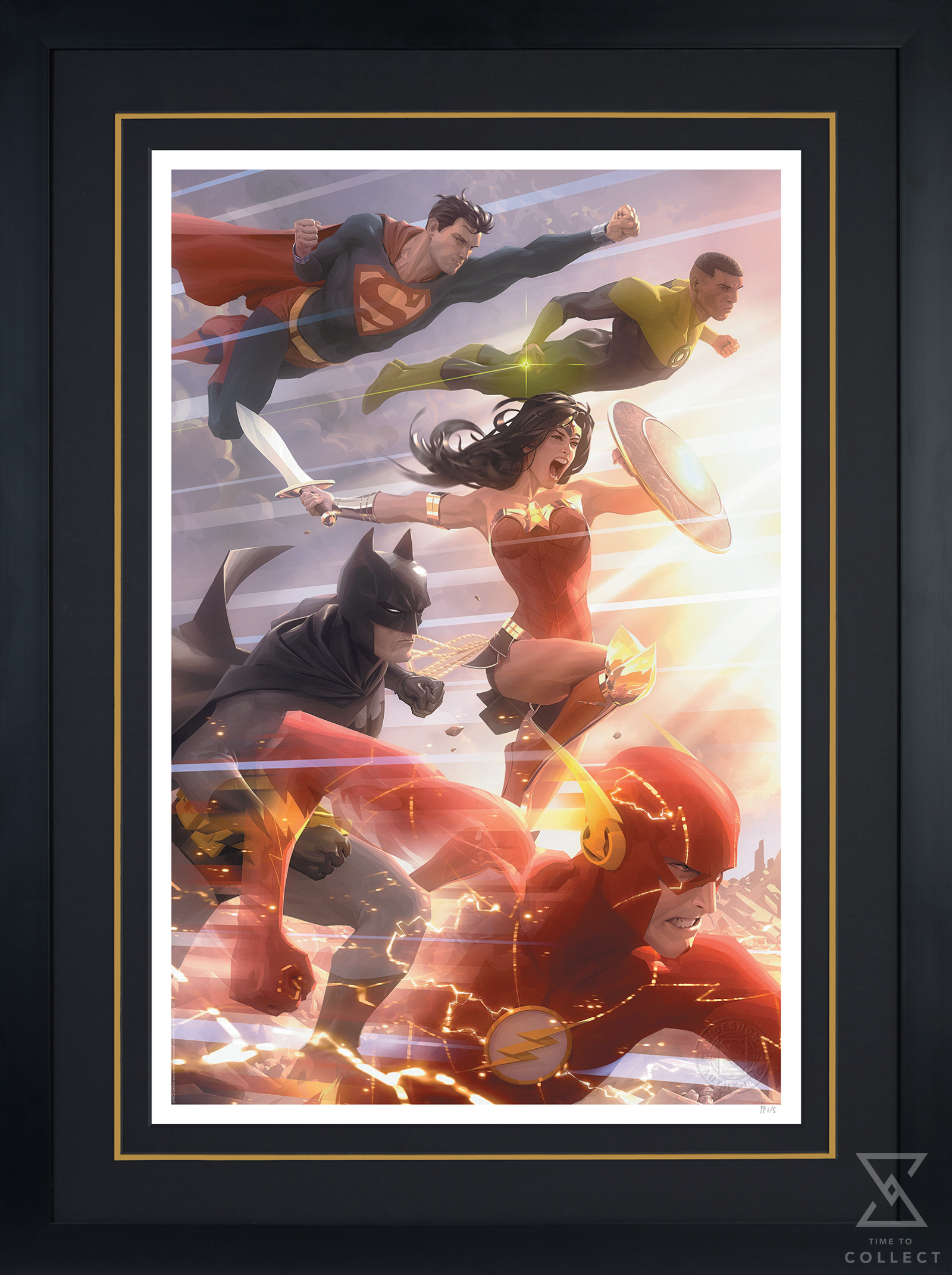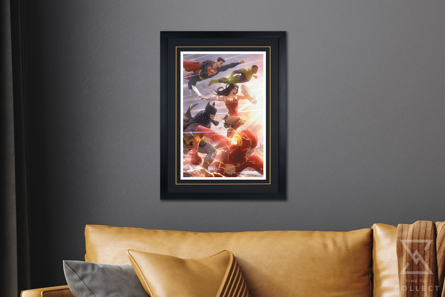 Originally created as a variant cover for Justice League #49, written by Simon Spurrier for DC Comics, this comic book artwork is now available to fans in a fine art collectible format. Each Justice League #49 Fine Art Print in the numbered edition of only 250 pieces features an embossed Seal of Authenticity. The print is available as an unframed giclée print, or with custom framing options including a simple contemporary frame or a deluxe double matted frame presentation. Fans can choose which style best fits their DC Comics artwork collection, perfect for display alongside Justice League statues and figures.