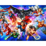 Icons across time and space, the super heroes of the DC Universe stand for hope, justice, and goodness above all. Like bright beacons against the darkness, the Justice League unites to face all manner of threats, from street-level squabbles to intergalactic crises. This incredible deluxe-sized composition features 20 iconic DC Comics heroes in all: Hawkman, Plastic Man, Red Tornado, Green Arrow, Doctor Fate, Black Canary, Cyborg, The Flash, Supergirl, Green Lantern, Batman, Superman, Wonder Woman, Shazam, Aquaman, Martian Manhunter, Hawkgirl, Zatanna, Vixen, and Firestorm. No matter what sectors, kingdoms, or countries they hail from, these heroes form a united front to protect humanity with everything they’ve got.