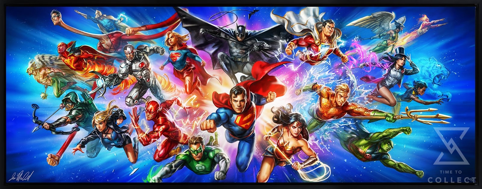 Unite the bravest and boldest in the Omniverse with the Justice League: World’s Greatest Super Heroes Deluxe Fine Art Print by Ian MacDonald today!
