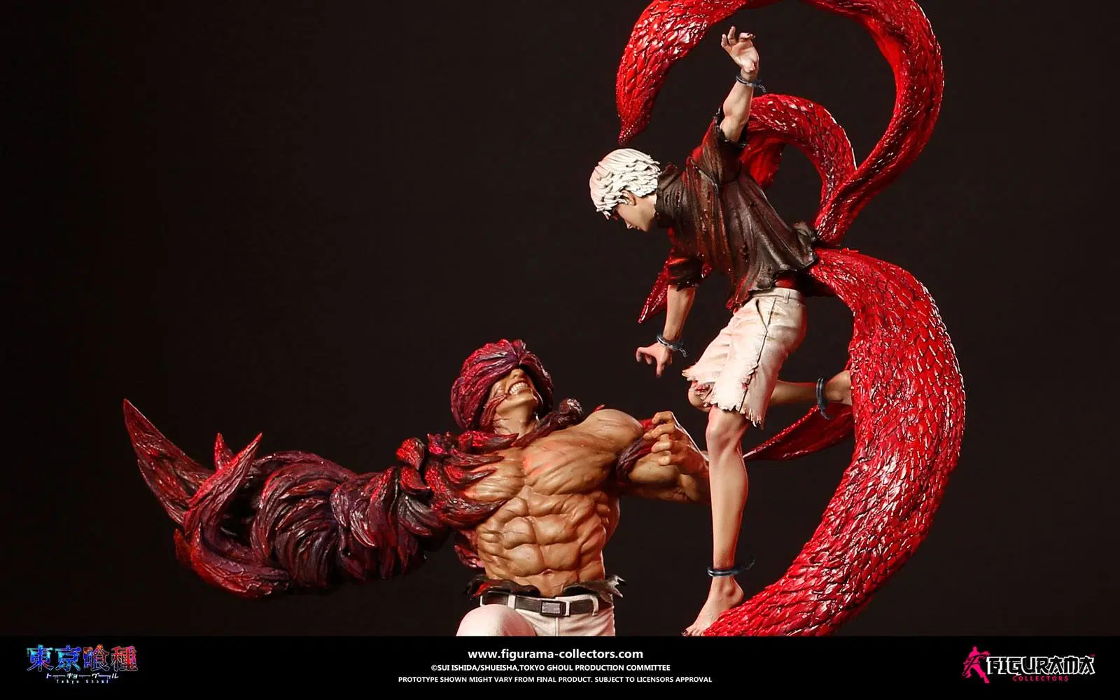 Sold in a highly-limited, 800-piece release, Figurama’s exclusive Tokyo Ghoul diorama includes optional heads for both Kaneki and Yamori. As a bonus, the diorama includes two weathered stands embellished with the cryptic Tokyo Ghoul logo, so collectors can conveniently and attractively display the secondary Kaneki and Yamori heads like miniature 1/6-scale busts alongside the diorama.