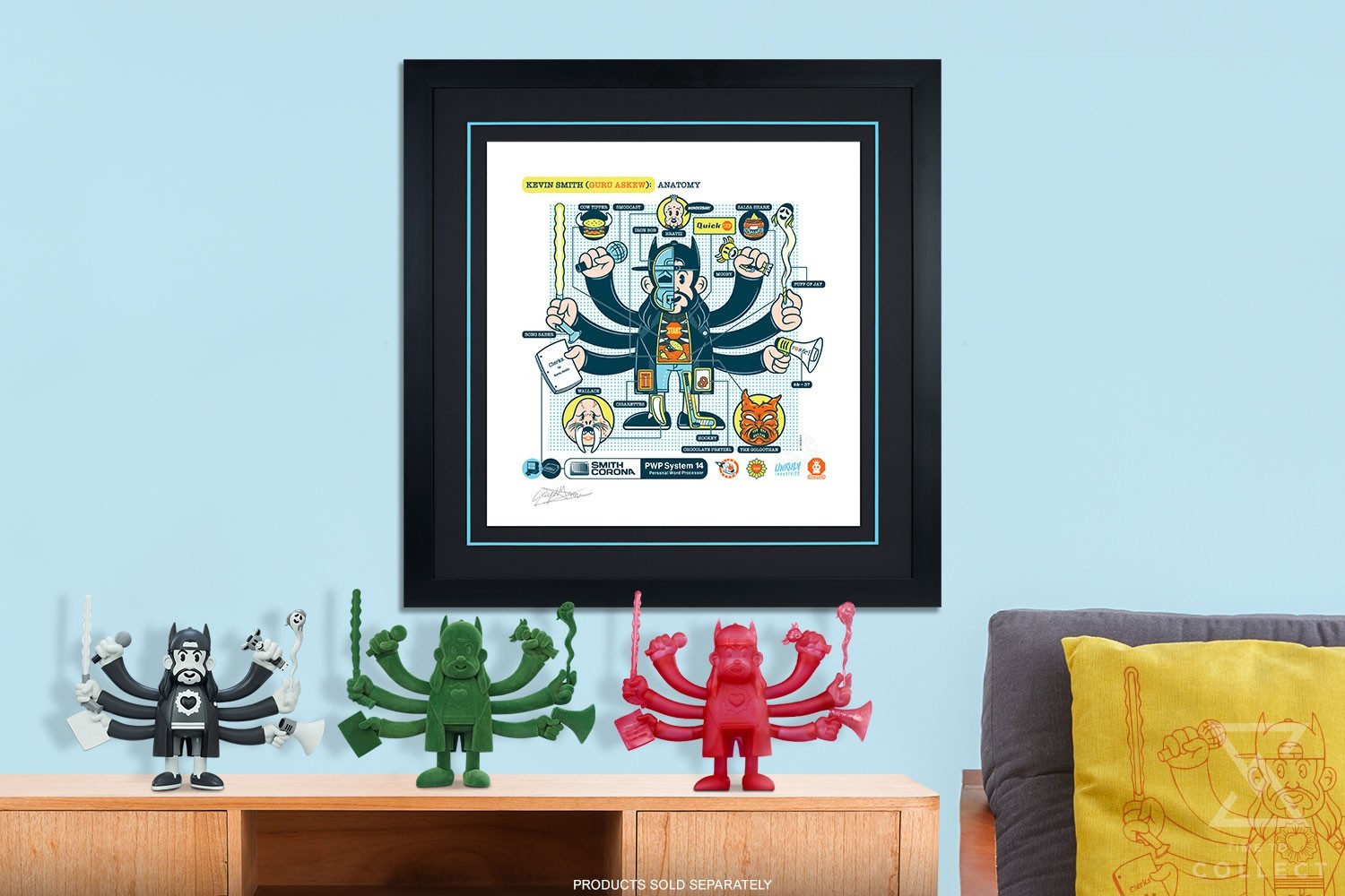 Each Kevin Smith: Guru Askew Fine Art Print features an authorized, automated artist signature and an embossed Seal of Authenticity as a part of this exciting, officially licensed release from Sideshow. Pair this print with Chogrin’s Kevin Smith: Guru Askew Designer Collectible Toy from Unruly Industries™ to create the ultimate tribute to this pop culture pioneer in your collection.