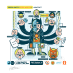 From film and comics to podcasting and comedy, Kevin Smith has had his hands in all facets of modern pop culture, changing the indie scene forever. Artist Chogrin dissects the mack daddy of geeks in this creative composition layered with more Easter eggs than you could fit in a single cinematic universe — or in this case, Askewniverse. Though he may come off as the silent type, this visionary filmmaker has plenty to say, whether through the mic in his hand, his latest movie script, or a loud and lewd bullhorn. And at the end of the day, he always has time to unwind with a little puff of Jay.