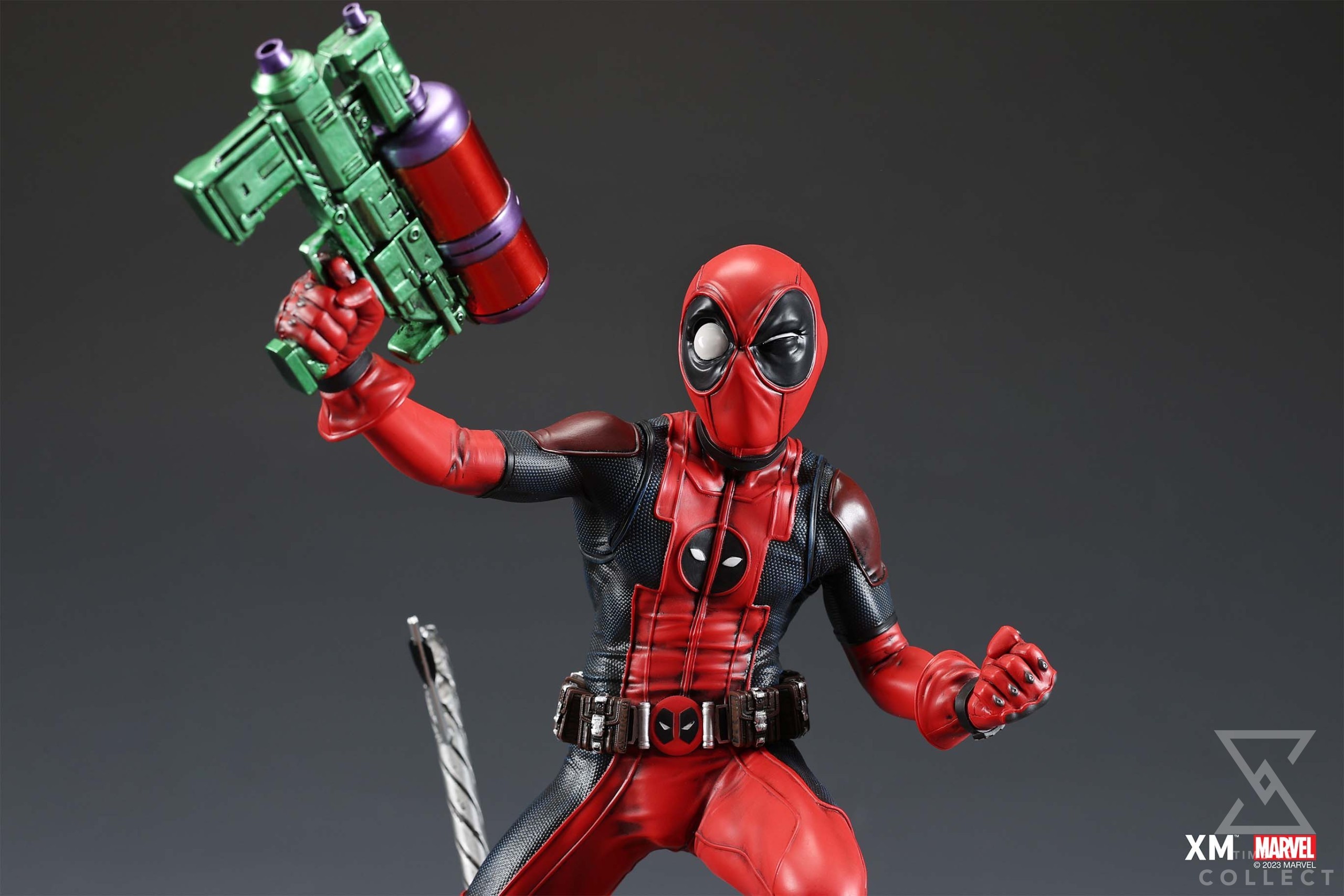 Kidpool possesses phenomenal hand-to-hand combat and weaponry skills and shares the same powers as Deadpool. He attended the Xavier Orphanage for Troubled Boys and was getting into trouble when Deadpool appeared out of a dimensional doorway and recruited him into the Deadpool Corps to help save the Multiverse. Designed to be a companion piece to XM’s Deadpool and Lady Deadpool, it features a similar merry-go-round amusement ride thematic base with a destroyed seat. Kidpool brandishes his water gun as Dogpool charges forth from the wrecked carriage seat with a dagger, ready to take down their adversaries. It captures the playful, goofy spirit that is also present in XM’s Deadpool and Lady Deadpool statues, with Kidpool waving the water gun as his weapon of choice. This piece comes with an additional left and right arm to position Kidpool holding the water gun, and an additional head sculpt portraying him taking aim. A must-have for any Deadpool Corps fans to complete the collection!