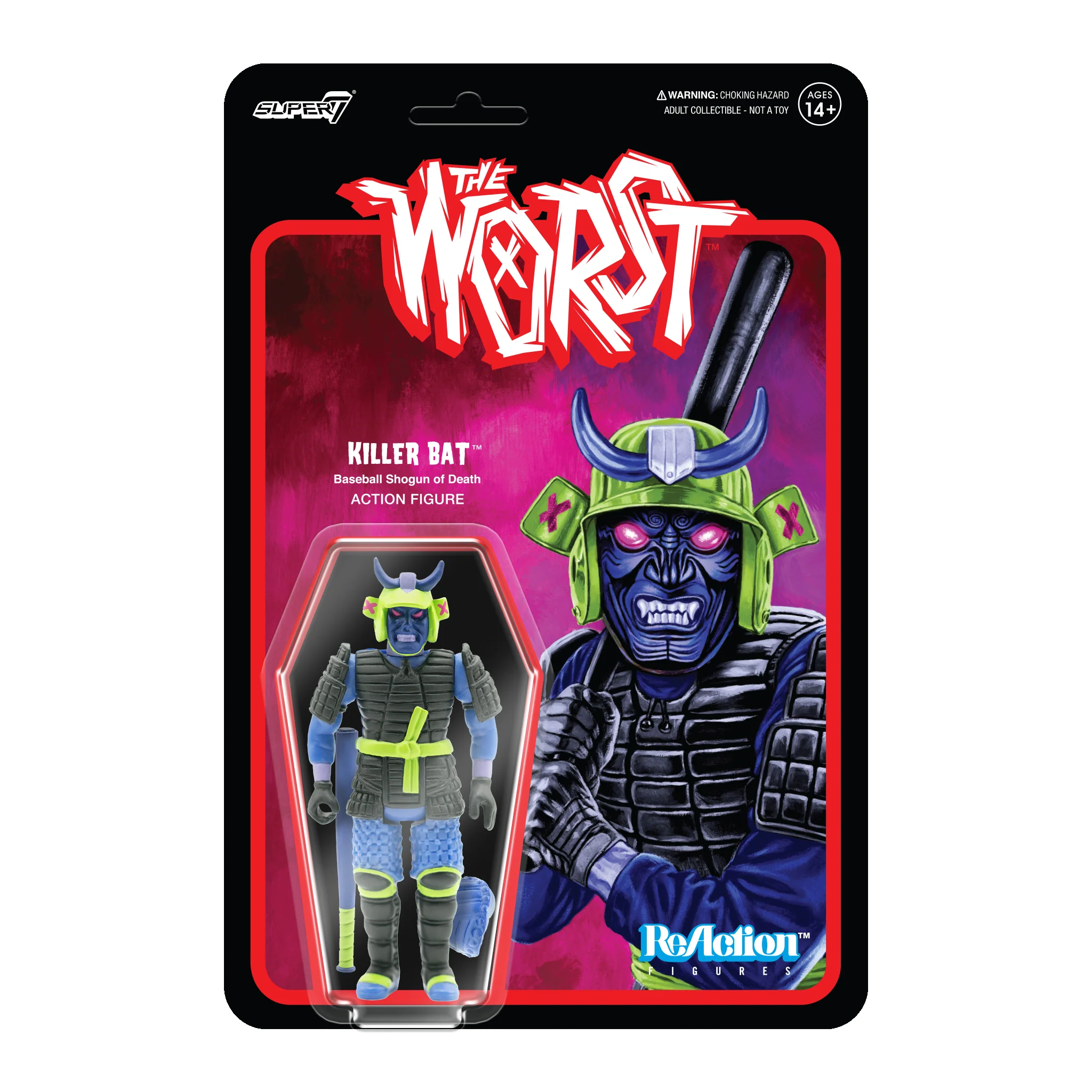 Killer Bat, the Baseball Shogun of Death, is the game’s most violent player. The “Specter” version of Killer Bat comes at you like an unhinged 100 mile per hour fastball during a night game and the strike zone is YOU! Killer Bat comes game and mayhem ready with his samurai sword (with baseball bat scabbard) and baseball glove accessories.The Worst is Super7’s own gang of the most villainous vile vermin! There are good guys. There are bad guys. And then there are…“The Worst!”