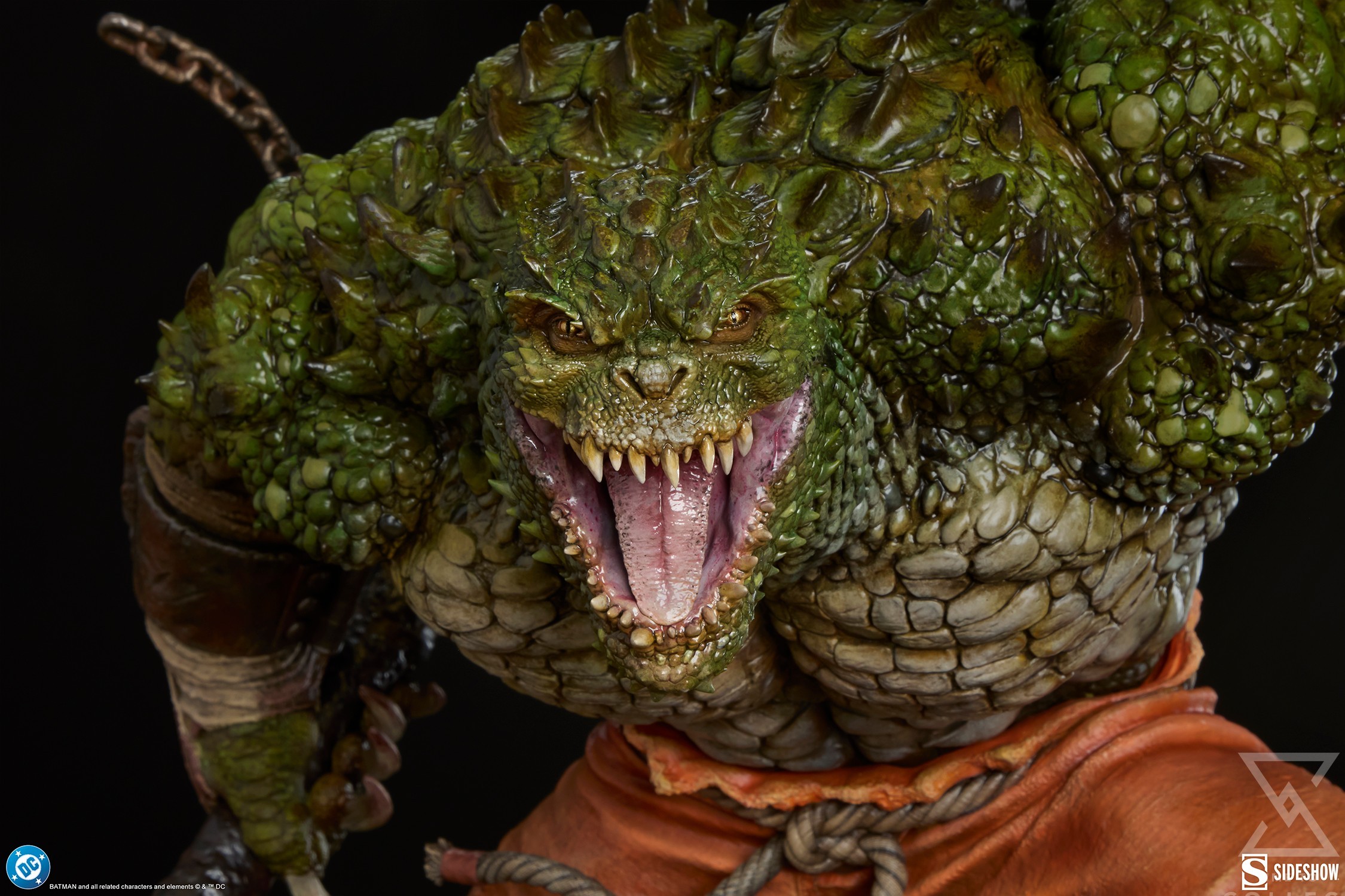 Beware of crocodiles! Measuring 22.44” tall x 24.44″ deep x 21.25″ wide, the Killer Croc Premium Format™ Figure rampages around the city sewers. Waylon Jones’ reptilian mouth unhinges in a furious scream as he tears through the filthy underbelly of Gotham … a place only outcasts, vermin, and fellow freaks may call home. Liberated from his cell, but not from his rare condition, the bulky villain once again plunges into a life of crime and inhuman urges.