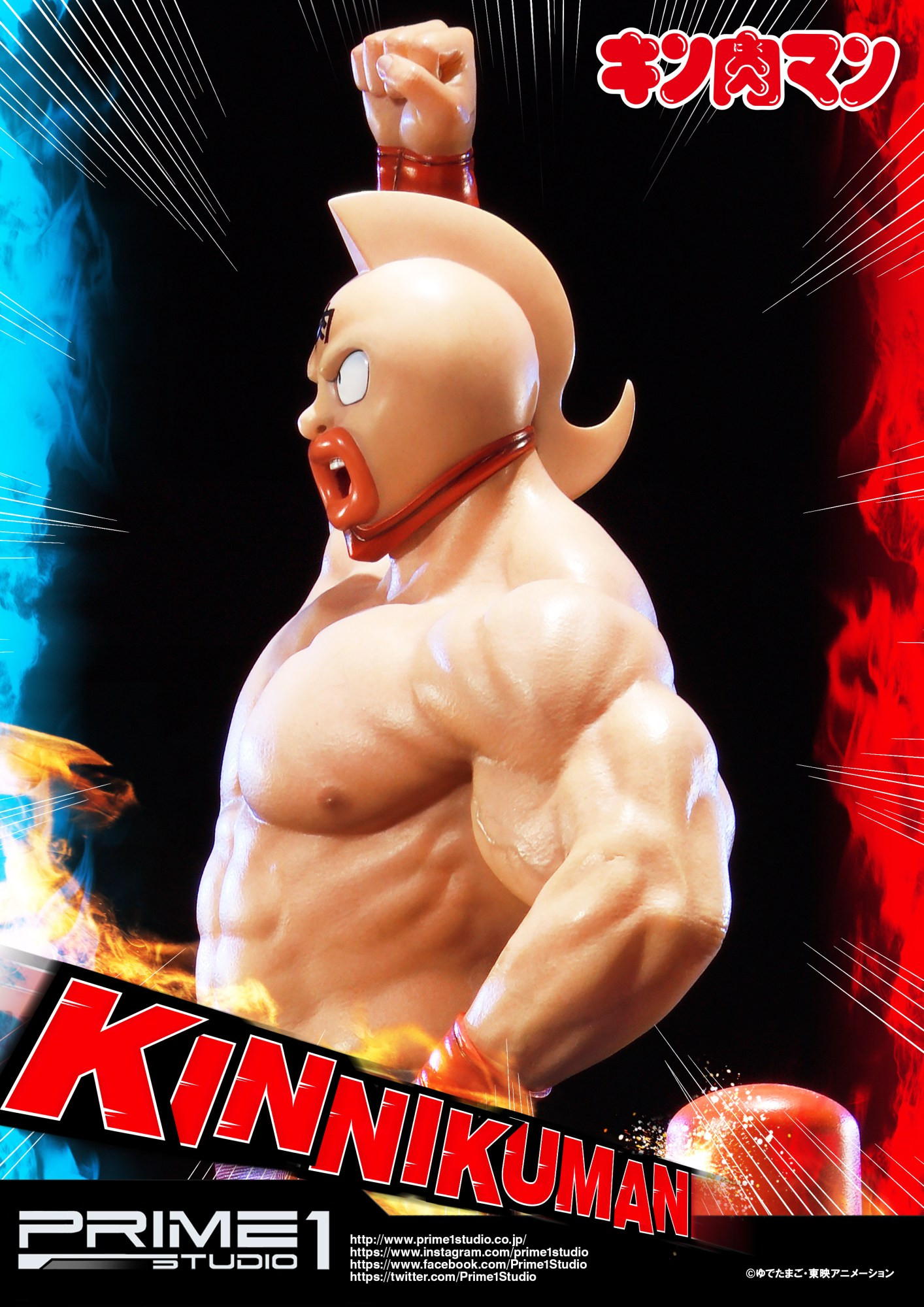 Prime 1 Studio is proud to present PMKIN-01: Kinnikuman from the manga series Kinnikuman created by the duo Yoshinori Nakai and Takashi Shimada, known as Yudetamago. It follows Kinnikuman also known as Suguru Kinniku, a superhero who must win a wrestling tournament to retain the title of prince of Planet Kinniku. Nakai and Takashi planned the series when they were attending high school originally as a parody to Ultraman. He is crafted with attention to details and true to the original design of the character. He stands with his personal assistant Meat-Kun approximately 29 inches tall.