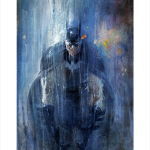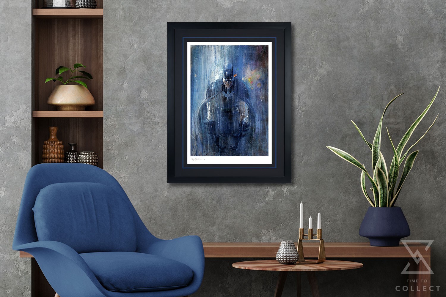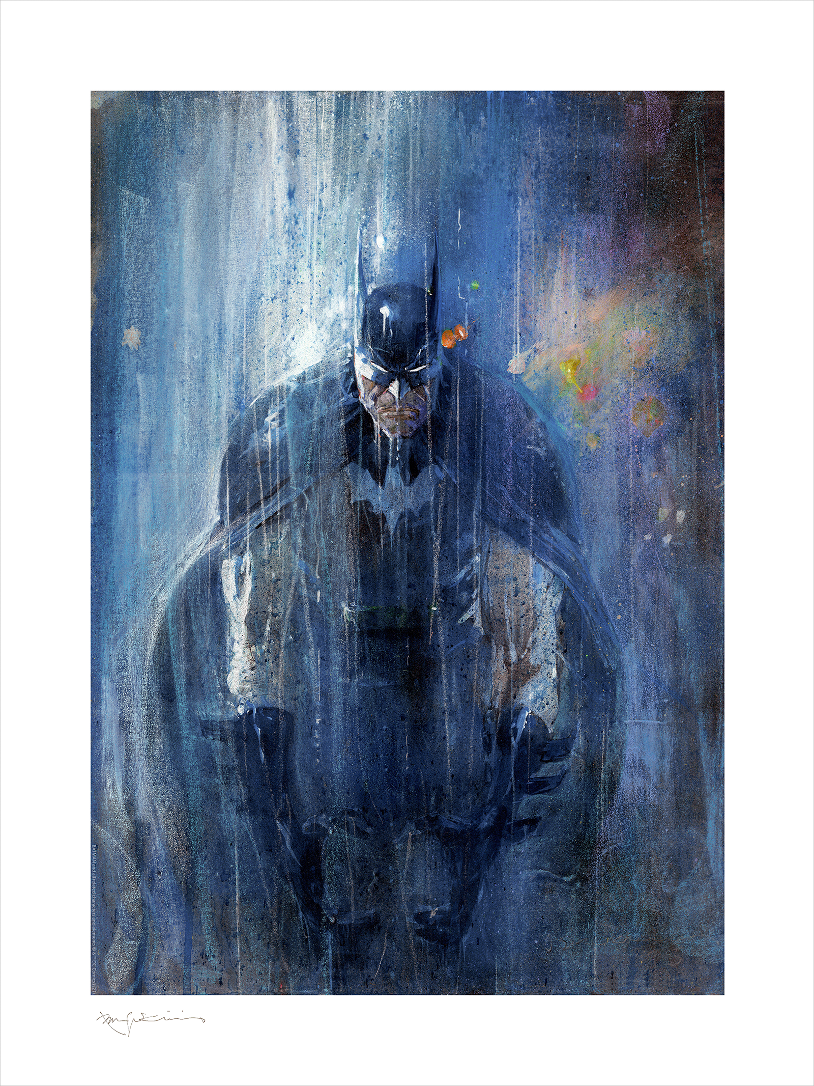 The looming shadow of Batman™ is everywhere in Gotham. There is nowhere criminals can lurk outside of his watchful eye, and nothing will slow the Caped Crusader in his fight — not even the perpetual rain and gloom of the city. Legendary comics artist Bill Sienkiewicz crafts a striking portrait of Bruce Wayne unfazed by the rough elements and natural despair of the Gotham ecosystem. Colorful lights flash through the torrential rain as Batman pursues justice with a hardened resolve, just like a cleaning downpour that washes crime right out of the streets.