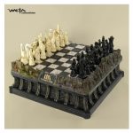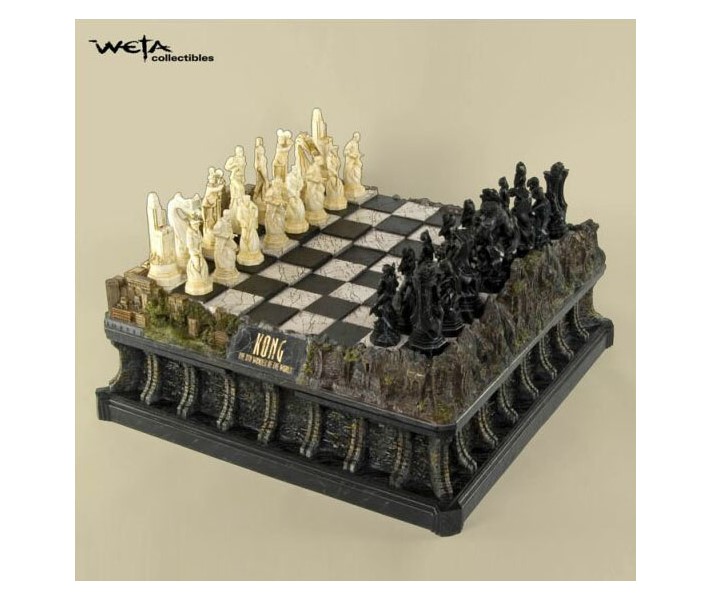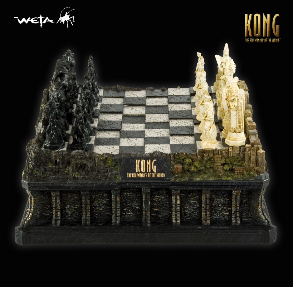 The Chess Set is Weta Sculptor Ryk Fortuna’s favourite piece out of all the Kong Collectible range. “It’s so cool”, grins Ryk. “It’s functional. It’s gorgeous, it’s tactile. It’s that next step in what I term as fine art. I’m gonna get one of those!” The chess pieces range in size from approx. 70mm H x 25mm W x 25mm L to 89mm H x 32mm W x 32mm L