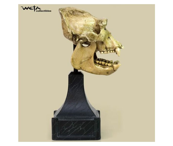 The Eighth Wonder of the World, King Kong – a massive 25 feet in height – inspires fear in all who behold him. Due to reoccurring battles to ensure his supremacy Kong’s lower jaw is broken, permanently exposing his lower right incisor. This piece shows the bone structure of Kong as it was conceived by the design team at Weta and accurately reflects the final look of the creature in the film.