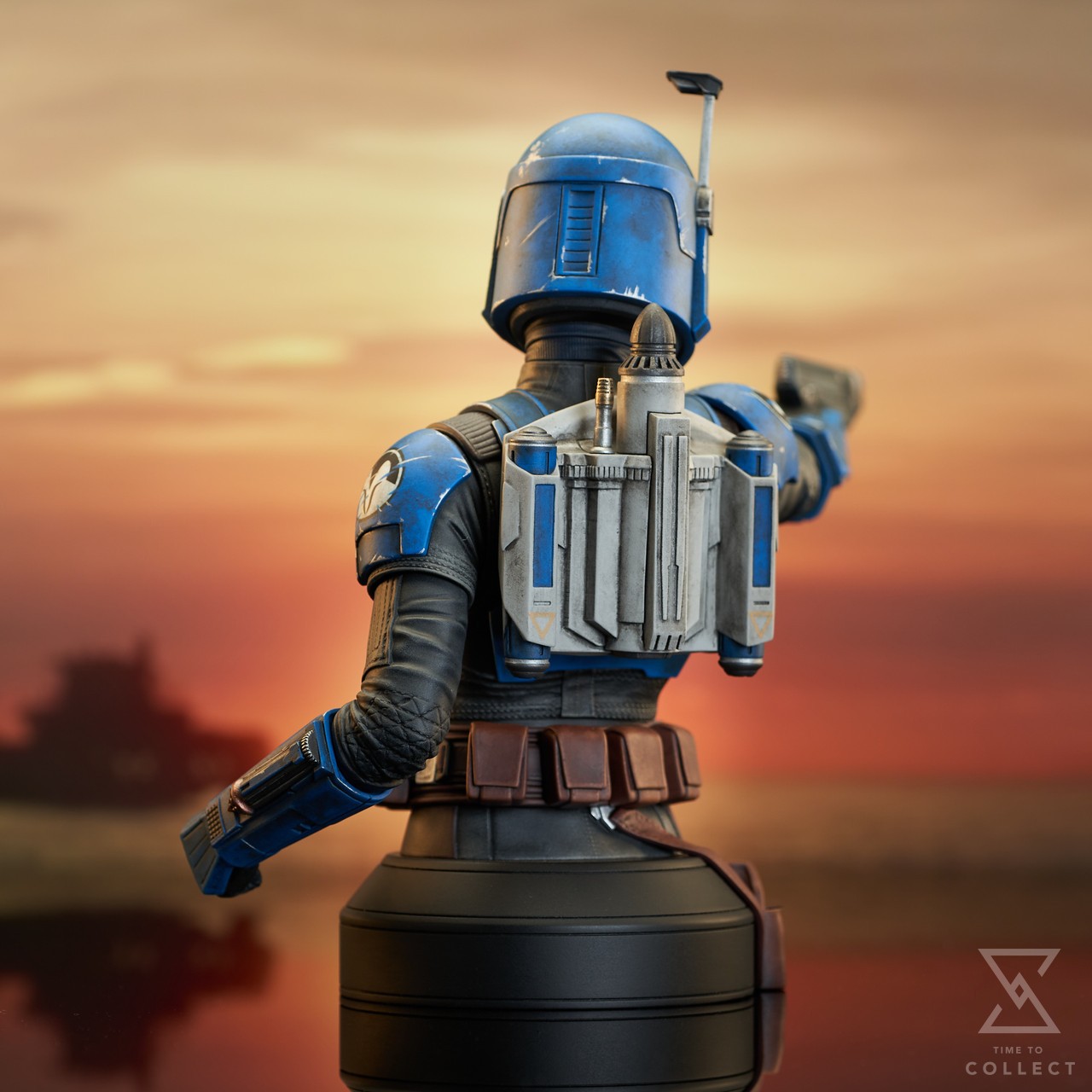 A Gentle Giant LTD release! Another Mandalorian has entered the battle! As seen in The Mandalorian Season 2, Koska Reeves, compatriot of Bo-Katan Kryze, is now the latest 1/6 scale mini-bust from Gentle Giant LTD! Standing approximately 6 inches tall atop a pedestal base, with her gun leveled, Reeves features interchangeable helmeted and unhelmeted heads, and features detailed sculpting and paint applications. Limited to only 3000 pieces, it comes packaged with a numbered certificate of authenticity in a full-color box.