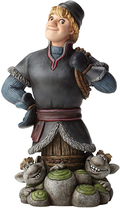 Kristoff, the rugged ice harvester may seem at first glance to be a bit awkward but he quickly demonstrates his heroic side to Anna in Disney’s Frozen. Look closely at the base and you will discover some magical trolls.