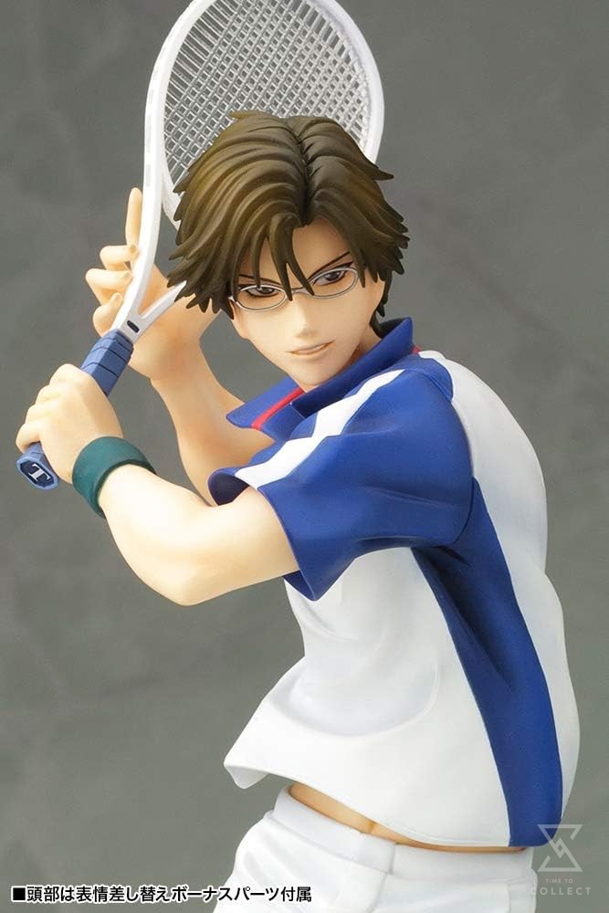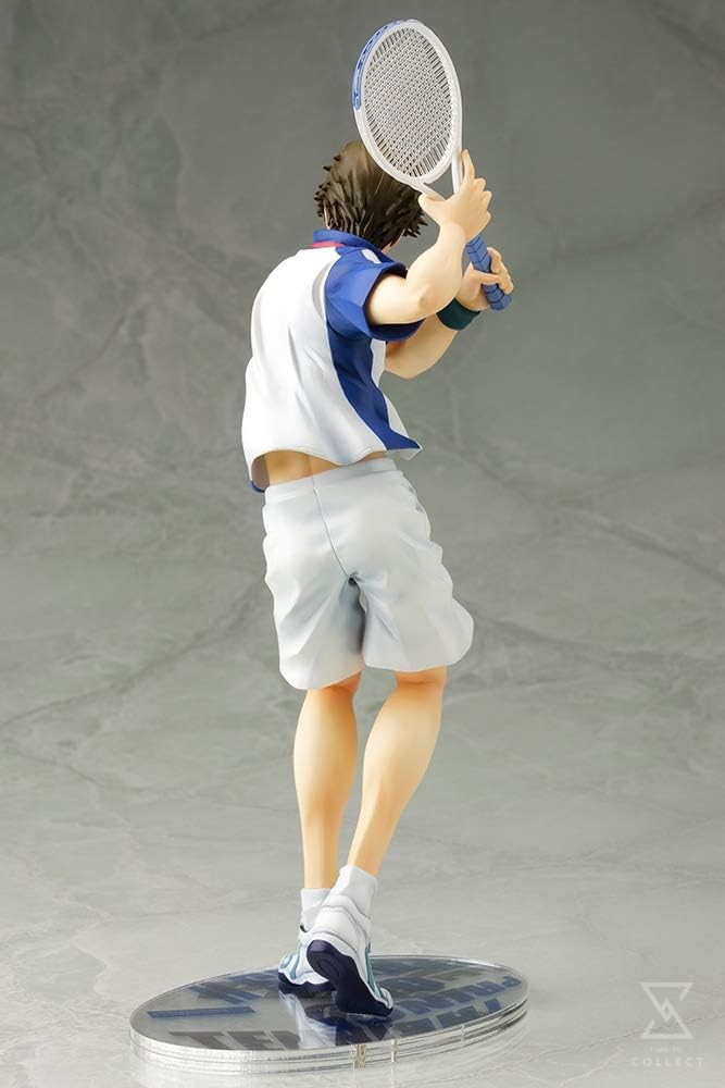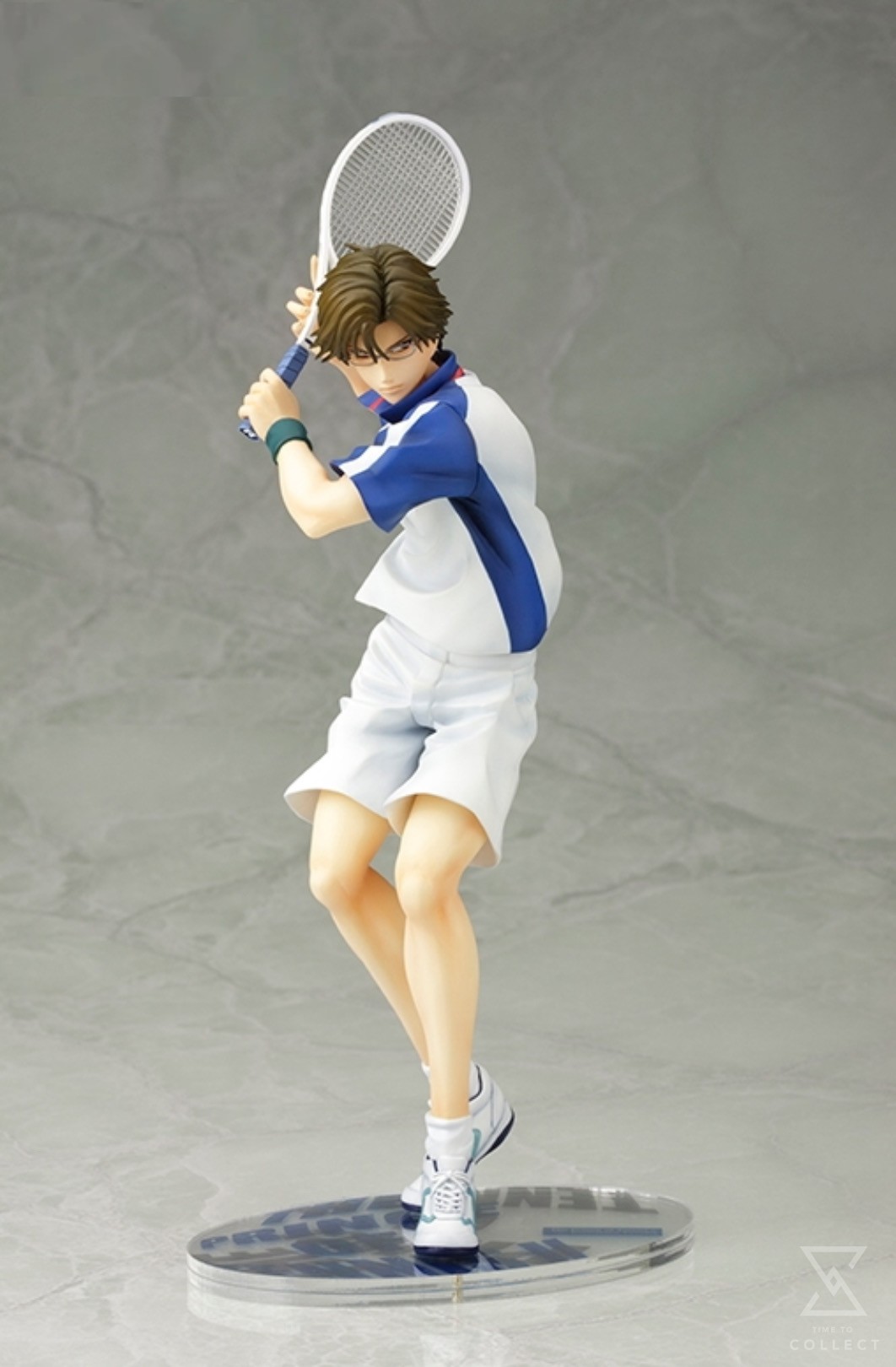 A Kotobukiya Japanese import! Next up in the ARTFXJ line of statues (a bold new expansion designed bring classic Japanese characters to their fans worldwide is the third athlete from the popular Japanese sports anime/manga series sequel Prince of Tennis II: Kunimitsu Tezuka! The single-minded captain of the tennis club at Seigaku Academy holds his racket at the ready, prepared for a backhand swing with a look of intense concentration on his chiseled features. Impressive sculpting portrays a sense of motion from the flow of his tennis outfit as Kunimitsu twists through his stance, light on his feet and ready to move! The stark white and blue of his Seigaku Academy uniform is accurate to the source material, as is the team captain’s perfectly sculpted face with his trademark eyeglasses. Sculpted by Tatsuya Hattori, Kunimitsu Tezuka stands just under 8 ½ inches tall (1/8 scale) on a special stylish base decorated with the title of the series and his name. Display this serious tennis champion alone or alongside the previously released Prince of Tennis ARTFXJ statues from Kotobukiya!