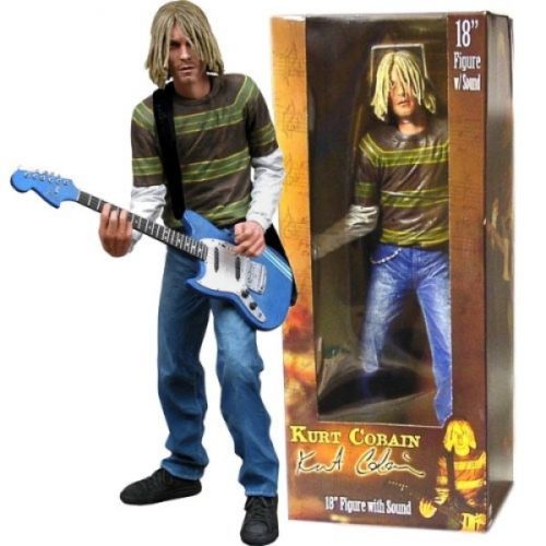 This stunningly detailed 18-inch action figure of Kurt Cobain comes complete with his Fender Mustang guitar and sound.
