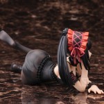 A Kotobukiya Japanese import! Based on the Japanese light novel series by Koshi Tachibana and Tsunako, Date A Live II is the second season of the hit anime following Shido Itsuka’s quest to stop Spirits from damaging the world. The first interesting character from this series to be immortalized in Ani*Statue form is the third Spirit, Kurumi Tokisaki! The most vicious of the Spirits and aggressive in her pursuit of Shido, Kurumi relaxes seductively here in a provocative outfit. Lying on the ground, she holds her head up with one hand while pulling up her knees in a cute, feminine motion. What little Kurumi wears shows off her trademark black color with lacy stockings and frilly lingerie with a partly transparent effect. The Spirit accessorizes with matching frilled wristbands and a huge black and orange bonnet, each decorated with crimson ties. The clothing colors draw the eye toward her face and her stunning eyes – one is a deep red while the other is a golden clock face! Impressive attention to detail captures every subtle element of the Spirit’s clothing as well as the long tendrils of her hair. Sculpted by Taketo Ogasawara, Kurumi Tokisaki presents a very interesting display in her relaxed position that’s less than 3 inches tall (1/7 scale). Capture this Spirit before she can do some serious damage!