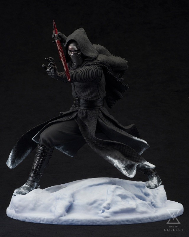 Kotobukiya’s ARTFX STAR WARS lineup continues with characters from STAR WARS Episode VII: The Force Awakens starting with none other than Kylo Ren! Kylo Ren looks great in this beautifully sculpted 1/7 scale statue, standing on a snow-themed base sculpted to hint at the shape of Darth Vader’s destroyed helmet Kylo Ren strikes a wide, stable stance, holding his unique lightsaber (with LED light up features) raised to attack those who oppose the First Order. With the ARTFX line’s easy snap-fit assembly, Kylo Ren is ready to display in seconds! Display along with other ARTFX+ statues based on characters from STAR WARS Episode VII: The Force Awakens such as the First Order Stormtroopers or Captain Phasma!