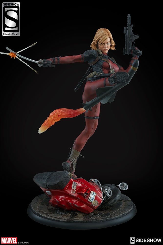 You may think to yourself, “How could the Lady Deadpool Premium Format Figure possibly be as charming and deadly as her unquestionably sexy Deadpool counterpart?” Well, I’ll tell you-