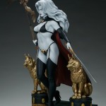 The Lady Death Statue is fully sculpted to capture the sultry, supernatural style of this beloved comic book character. Her pale complexion creates a striking contrast with her black costume, which is accented with gold skulls and includes the option for displaying a short capelet or long black cape with red interior. Lady Death’s portrait has voluminous white hair, white eyes, and a pop of red lips matching her manicure to add additional color to the goddess’ ashen appearance. From top to bottom, this horror statue is textured with incredible detailing, ready to face the demonic hordes in your collection.