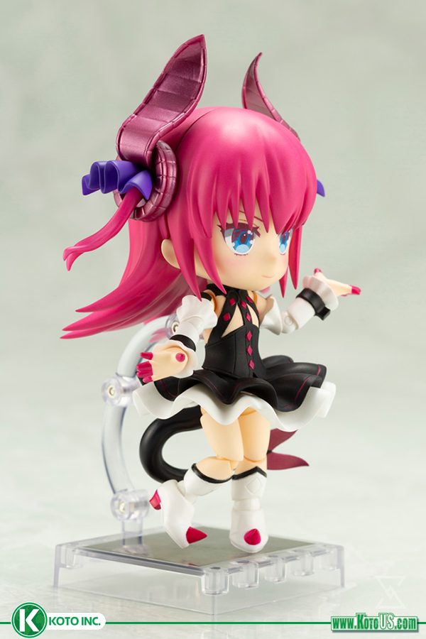 A Kotobukiya Japanese import! The latest character from the hit mobile game Fate Grand Order to join the Cu-poche series is Lancer Elisabeth Bartley in her costume from her second summoning! Cu-poche are pocket-sized action figures with non-scale proportions that give them a cute appearance. Despite their small stature, Cu-poche figures enjoy a wide range of movement, allowing them to be displayed in a variety of poses. Interchangeable face parts and magnets in the figure’s feet allow you to display it with a variety of poses and expressions. Lancer is super cute in Cu-poche form, with a high level of detail in her frilly dress and pink horns. The Cu-poche’s tail can be moved to the left or right, and the figure comes with added parts as well as two interchangeable face parts allowing you to create a variety of different poses and scenes.