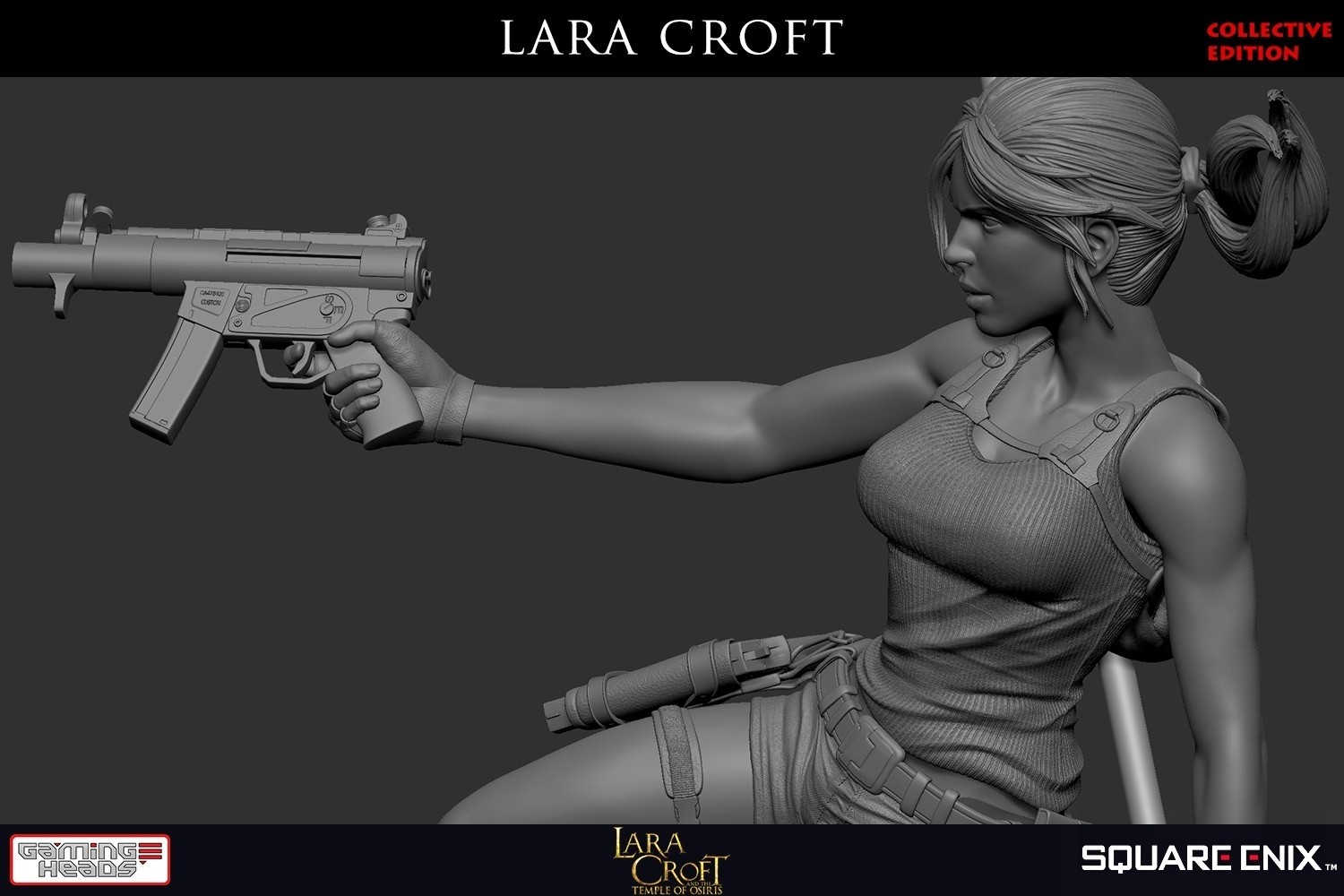 - The Tomb Raider™: Temple of Osiris – Lara Croft (Collective edition) statue is only available here at Gaming Heads and includes the staff of Osiris and an additional right arm holding the submachine gun. It also includes the parts that come with the Tomb Raider™: Temple of Osiris (regular edition) 1:6 scale statue, which is Lara’s right arm holding a flaming torch (yes, the torch can light up)* and the staff used by Horus.