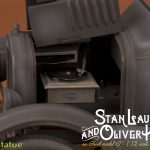 Sideshow and Infinite Statue present the Laurel & Hardy on Ford Model T Statue. Inspired by images from the film Busy Bodies (1933), this 1:12-scale car represents a new and exciting chapter in our creations linked to the iconic duo Laurel & Hardy. This time, our two heroes are traveling towards the sawmill, where they will cause all sorts of disasters, and the car will feature as prominently as the two stars. We worked on the original drawings and blueprints of the 1924 Ford Model T Runabout with meticulous care, in order to create a remarkable model, made with the utmost possible perfection. Each tiny detail has been redesigned, while preserving all the special characteristics that the car had in the film, such as, for example, the gramophone under the bonnet! This model is made with photoetched components, a special color scheme with vintage effects, PVC wheels, and two opening parts: the bonnet that opens on the side containing the gramophone, and the rear luggage compartment, revealing the suitcase containing tools placed there by Stan.
