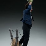 The Leatherface: Pretty Woman Mask Statue features a mixed media costume application, tailored from head to toe to recreate Bubba’s frightening fine-dining style. He wears a light pink collared shirt, black pants, a black necktie, and a navy suit jacket. The jacket and tie have wire in the seams for posing the fabric, allowing you to craft more dramatic, dynamic movement in this iconic, frantic ending scene. Leatherface’s distinct portrait also features a material rope element and soft synthetic hair, adding a terrifying touch of realism to the sculpted skin mask over his head. Additional costuming details like the open fly, exposed cut on his right leg, and the charm bracelet on his left wrist help to complete this meticulous recreation.