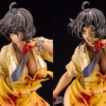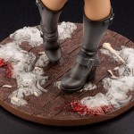 The highly anticipated character from the gold standard of horror movies finally joins the lineup! Leatherface from “The Texas Chainsaw Massacre” joins the Horror BISHOUJO lineup! With beloved illustrator Shunya Yamashita’s expert design, Leatherface’s appearance has been fully revamped while retaining its original look! This BISHOUJO rendition of Leatherface can be seen wearing only a shirt, pulling attention to Bubba Sawyer’s large body which has been adapted into a voluptuous physique. Leatherface’s hollow expression along with her reddened face and slightly open mouth show that she has lost all sense of control. The blood splatters on the yellow apron have been painted with a glossy paint in order to reproduce the look of slimy blood. The original bloody chainsaw designーa symbolic weapon in “The Texas Chainsaw Massacre”ーwas perfectly turned into 3D data, and was then adjusted to the size of the BISHOUJO statue in order to retain the authenticity. The base has been designed in a diorama-style with dust, feathers, and a scattering of bones and teeth which add to the eerie atmosphere of the Sawyer home. A human skin masked face part is also included, allowing you to recreate Leatherface as close to the original form as possible. Quiet madness is now at your fingertips.