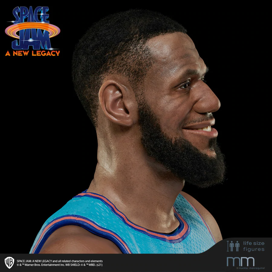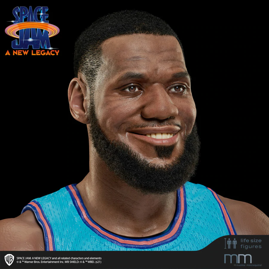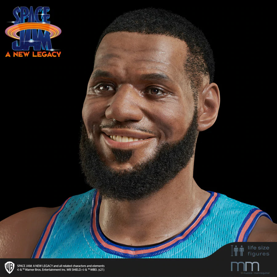 The next step to reality – with the LeBron James silicone head. High-end, made of high-quality silicone – amazingly real and unique worldwide. With individually hand-inserted whiskers, eyebrows and head hair, as well as expressive acrylic eyes that give the face a perfect expression. The lifelike high-end head in limited edition, forms the highlight of the SpaceJam life-size figures. LeBron James, as a 1:1 model, who must defeat the powerful team of Al-G Rhythm in basketball, so that he and his son are released from the virtual world again. It’s just as well that this world is also home to the Looney Tunes of Bugs Bunny and Lola Bunny.