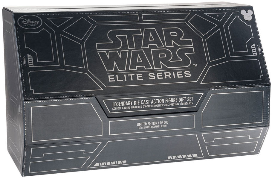 This exclusive D23 Collection showcases unforgettable characters from episode I – VI of the Star Wars saga. Meticulously engineered and crafted with ultimate Star Wars fans in mind, this set is the perfect addition to any collection. This exclusive box set launched the Star Wars Die Cast Elite Series from the Disney D23 Expo on August 14, 2015, and never made it to Disney Store shelf for sale to the general public.