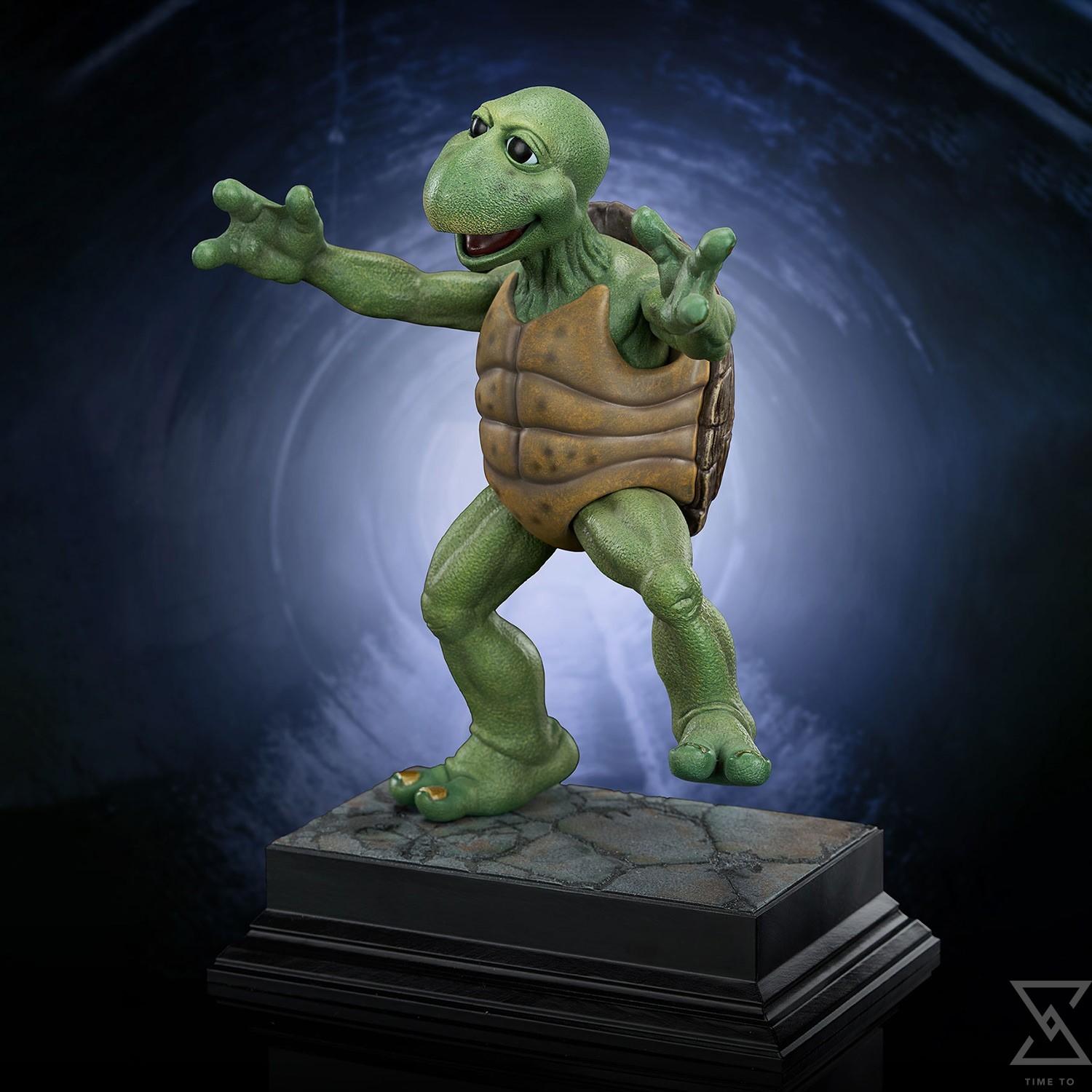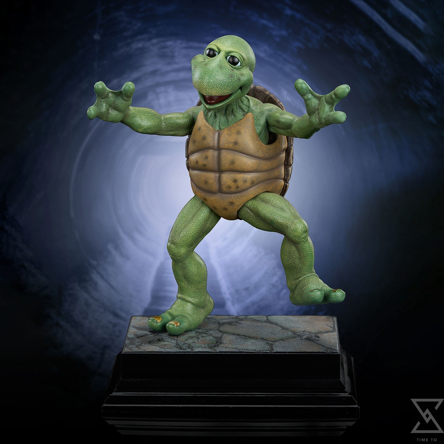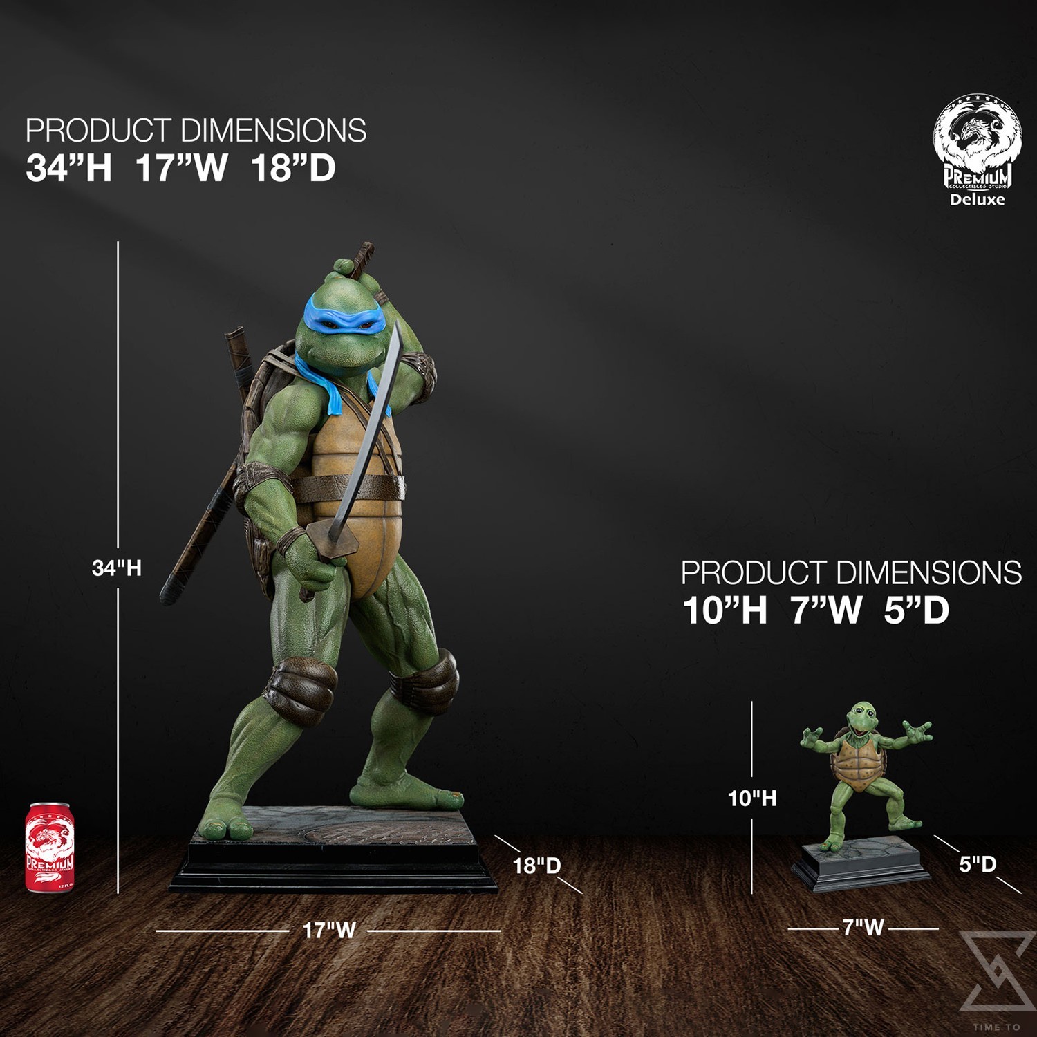 Standing an impressive 34” tall, the Leonardo 1:2 statue is sculpted in incredible detail from the textured reptilian pattern of his skin to the realistic leather like appearance of his belt, knee and elbow pads. The sculpted details are made even more apparent by the excellent paint work throughout. Metallic finishes on Leonardo’s katana and realistic glass eyes add additional depth to this piece and tie in nicely with the clean finish of the museum style base.
