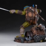 The Leonardo 1:3 scale statue measures 20.5” tall and 19” wide as the fearless and stoic leader of the turtles, wielding his signature katanas and perched on a drainpipe, prepares to fend off the ferocious Mousers and lead his brothers to victory in New York’s sewer system.