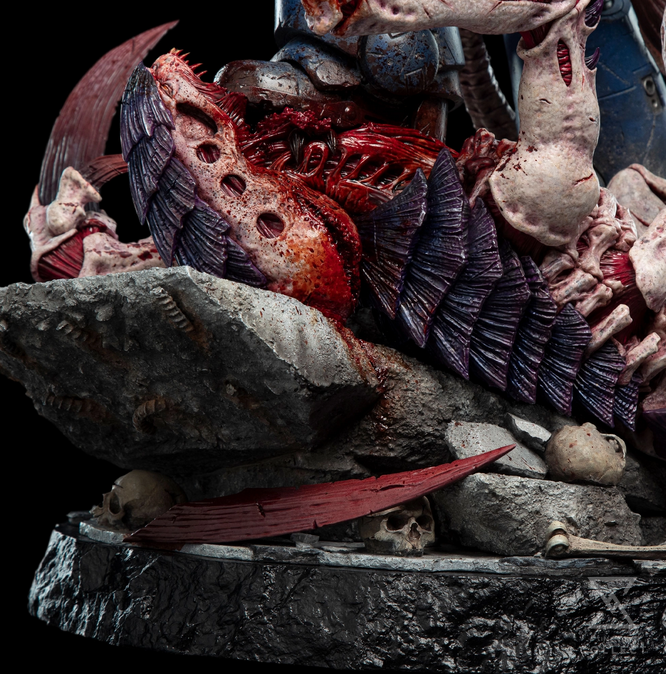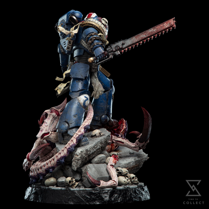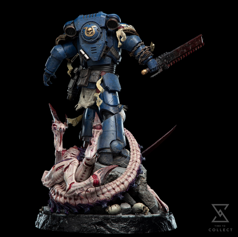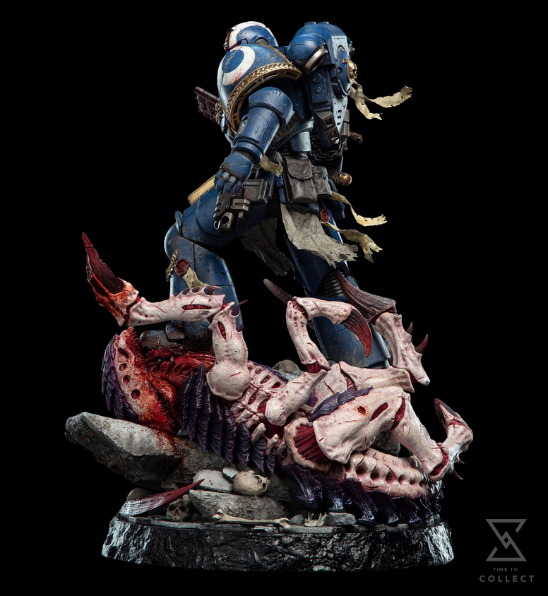 From the battle-worn, heraldry-adorned Power Armour, synonymous with the Space Marine, to the flesh-torn, sinewy corpse of a freshly slain Hormagaunt, every detail has been expertly fashioned into a glorious Limited Edition 1:6 scale statue. With swappable heads and weapons, this is truly a collectible worthy of the Emperor himself.