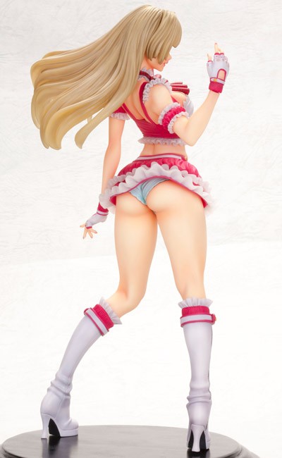 As beautiful as she is dangerous, the youthful Lili stands ready to face any opponent. The graceful fighter looks confident as she leans to one side and flips her long hair back from her face. Lili wears an adorable frilly outfit consisting of a top and short skirt in red with white trim, and she further accents that with matching fingerless gloves, a choker, and tall, high heeled boots. A classic beauty, Lili has light blue eyes and stunning blonde hair that look great with her Bishoujo inspired face. You can see Kotobukiya’s famed craftsmanship in all of the little details from the fighter’s finely sculpted flowing hair to the intricate ruffles on her clothing and her slim physique.