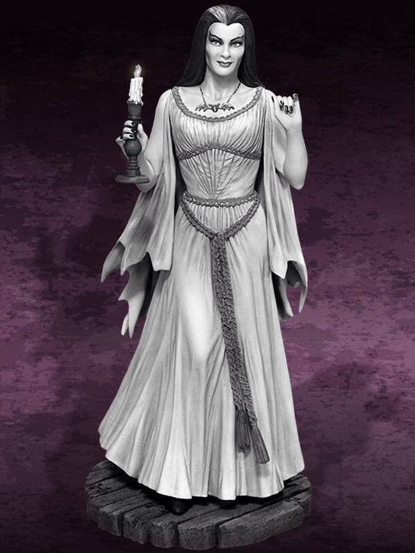 The level headed matriarch of the Munster’s household is all dolled up in her iconic purple dress, black fingernails, and Swarovski adorned bat necklace and will be the perfect companion piece to the Herman Munster Maquette or as a lovely stand alone collectible!