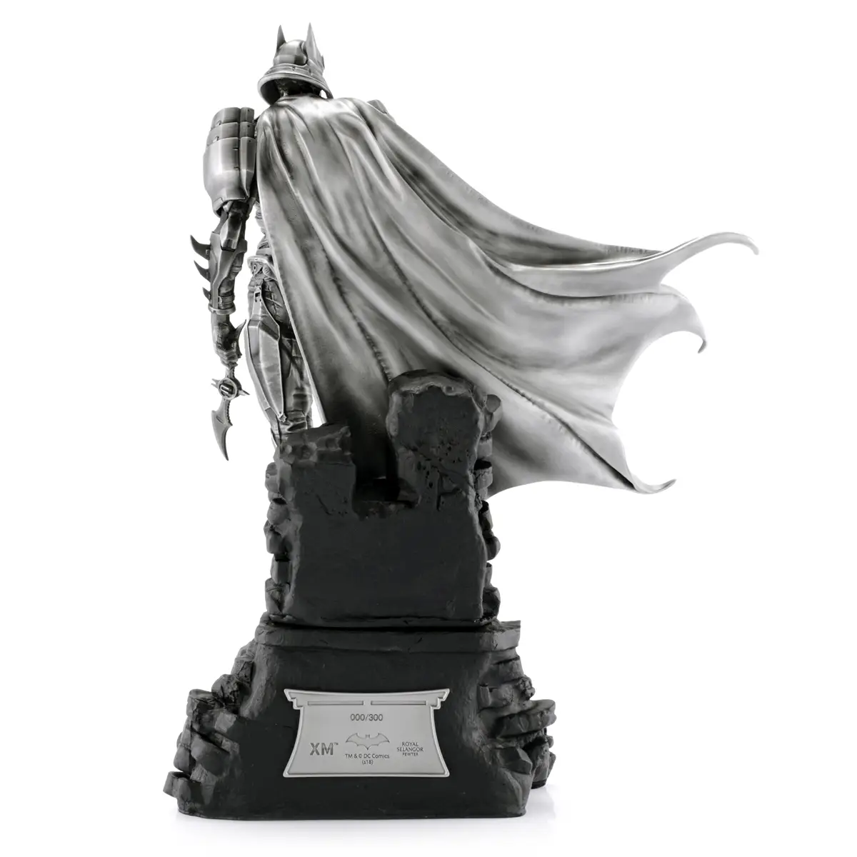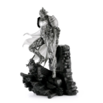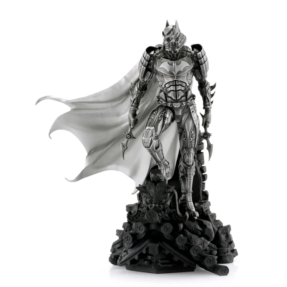 Royal Selangor’s 1/6 scale replica reproduces every detail of XM’s dramatic original. Batman, his foot on an especially grotesque onigawara, is clad in an elaborate pseudo-steampunk take on samurai armour, brandishing a pair of formidable katana. Held in place by magnetic fittings, the hands can be switched out for ones grasping batarangs. All pewter, on a bonded porcelain base.