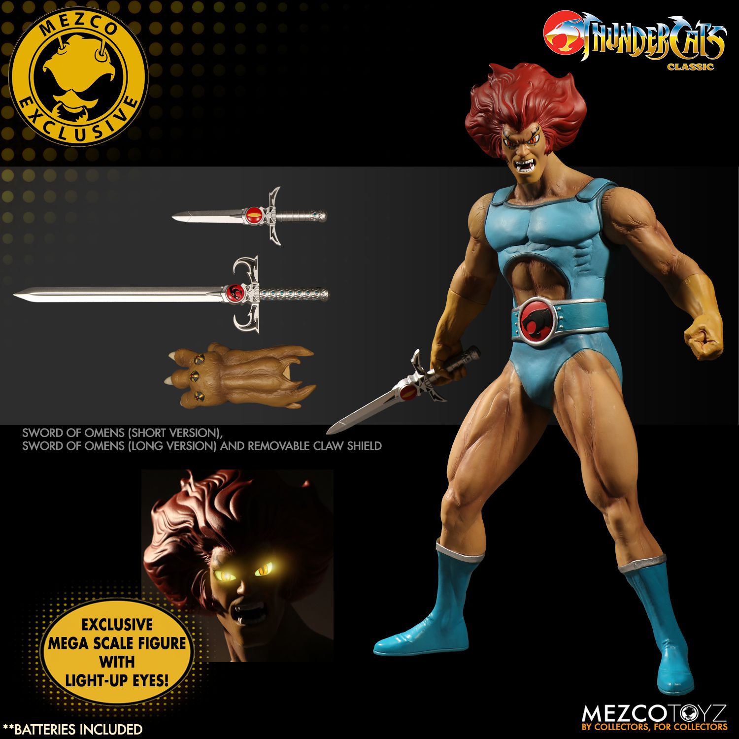 Straight from the ThunderCats\’ Lair on Third Earth, it\’s Lion-O and the legendary mystic Sword of Omens. This mega-scale figure measures over 20 inches tall from the tip of his upraised, extended sword to the soles of his Thunderian boots. Featuring 7 points of articulation this mega figure is superbly detailed, perfectly capturing not only the iconic look of Lion-O as he appeared in the classic television series, but the essence of Lion-O as he proudly raises the mystic Sword of Omens towards the heavens and roars out \’Thundercats, Ho!\’ He comes complete with his impressive Claw Shield and a removable mystic Sword Of Omens, packaged in a collector friendly window box.