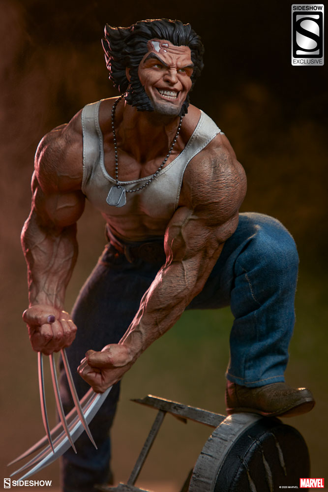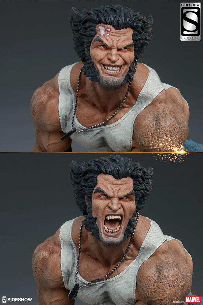 The Exclusive Edition of the Logan Premium Format™ Figure includes an alternate battle damage portrait exposing Wolverine’s adamantium skull as he smirks at some sorry sucker fixing for a fight.