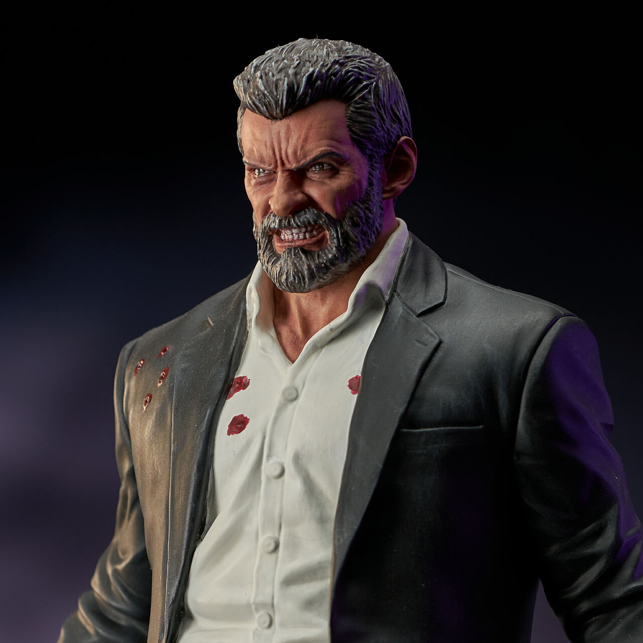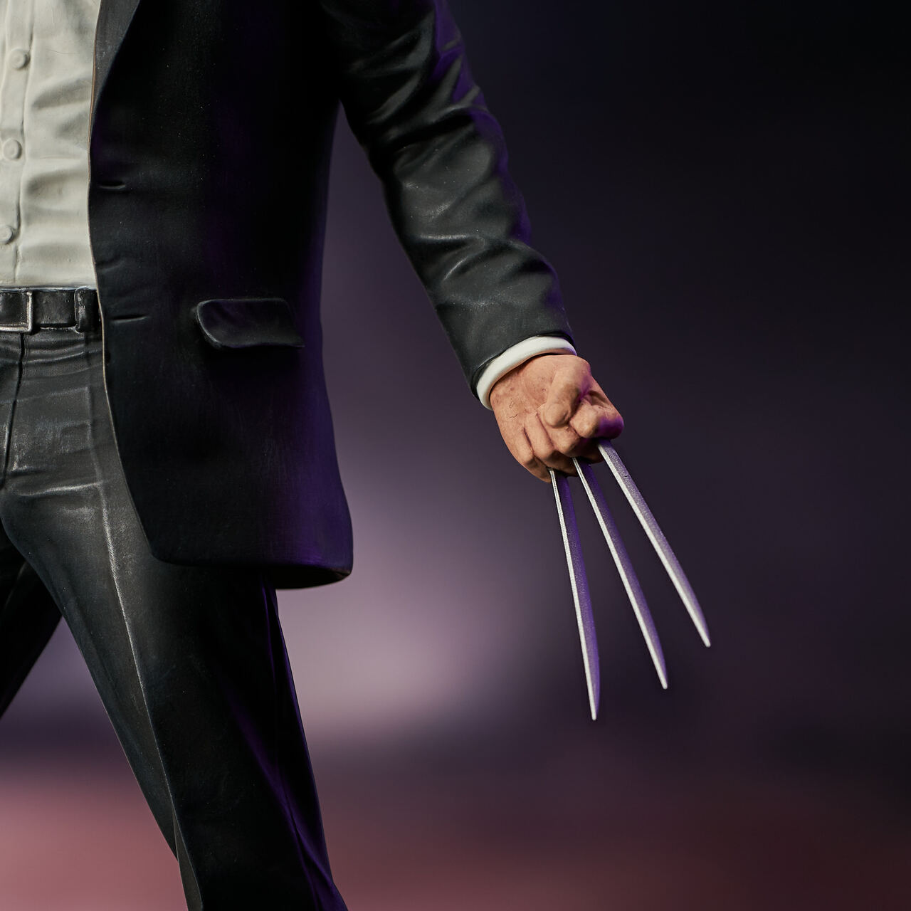 Measuring approximately 10.5 inches tall, this resin statue depicts the suit-clad Logan with his claws bared, ready for action. It features detailed sculpting and paint applications, as well as movie likeness. Includes a numbered certificate of authenticity in a full-color box. Limited to 3,000 pieces. Sculpted by Rocco Tartamella.