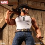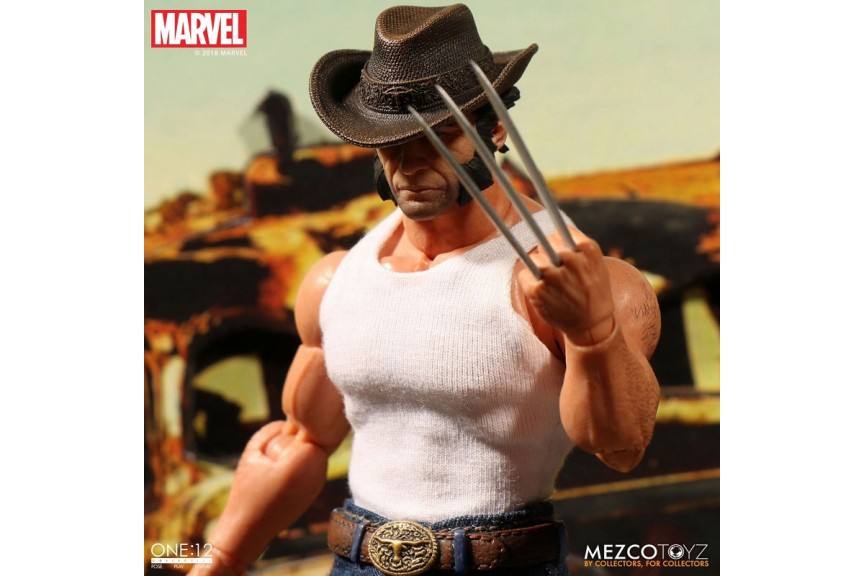 Soldier • Weapon • Mutant. The One:12 Collective Logan figure invokes his rugged and feral nature. He features three head portraits, a dog tag, a fitted tank-top with jeans, a belt with a western-style buckle, a leather-like jacket with a functional zipper, and cowboy boots. Logan comes with six interchangeable hands – both with and without his trademark claws extended.