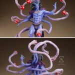 To alpha and alpha, all the way to the Cognouza Ward of Aeor, ambitious Lucien Tavelle has trekked and schemed to transcend his mortal limits. As the Nonagon, he was granted immense powers by the fallen city’s betrayers, the Eyes of Nine. The Lucien the Neosomnovem – Mighty Nein Statue captures his penultimate villainous transformation at the pulse-pounding climax of Critical Role Campaign 2: The Mighty Nein. Where nine eye tattoos once marked his figure, writhing stalks each tipped with an arcane red eye emerge from his body. The purple devilkin himself now takes an empowered, muscular form with enlarged horns and wildly drifting dark hair.