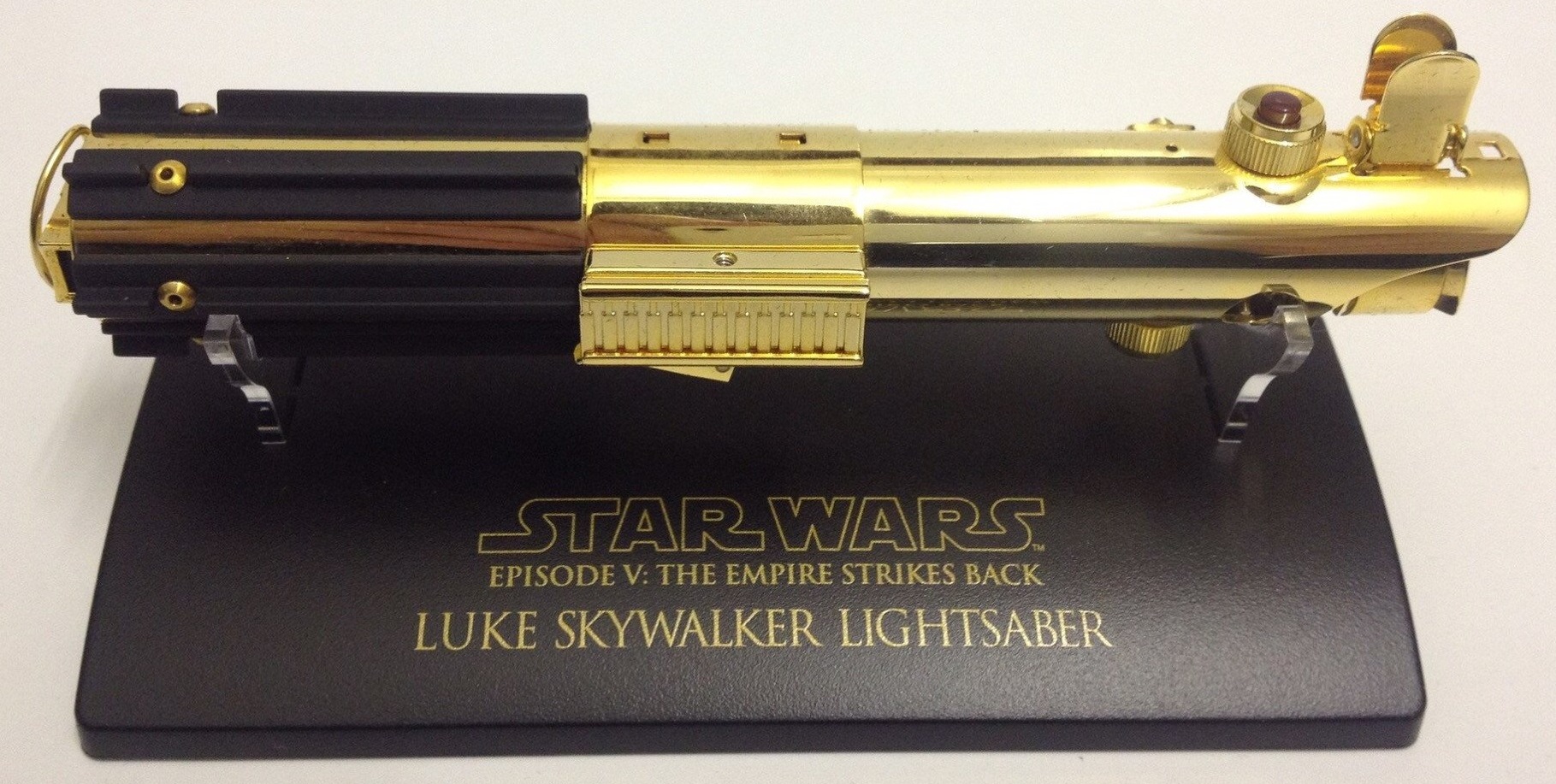 This replica from Master Replicas (reference SW-332) represents Luke Skywalker’s lightsaber in scale 1/2 (rather 0.45 in reality) as can be seen in The Empire Strikes Back.