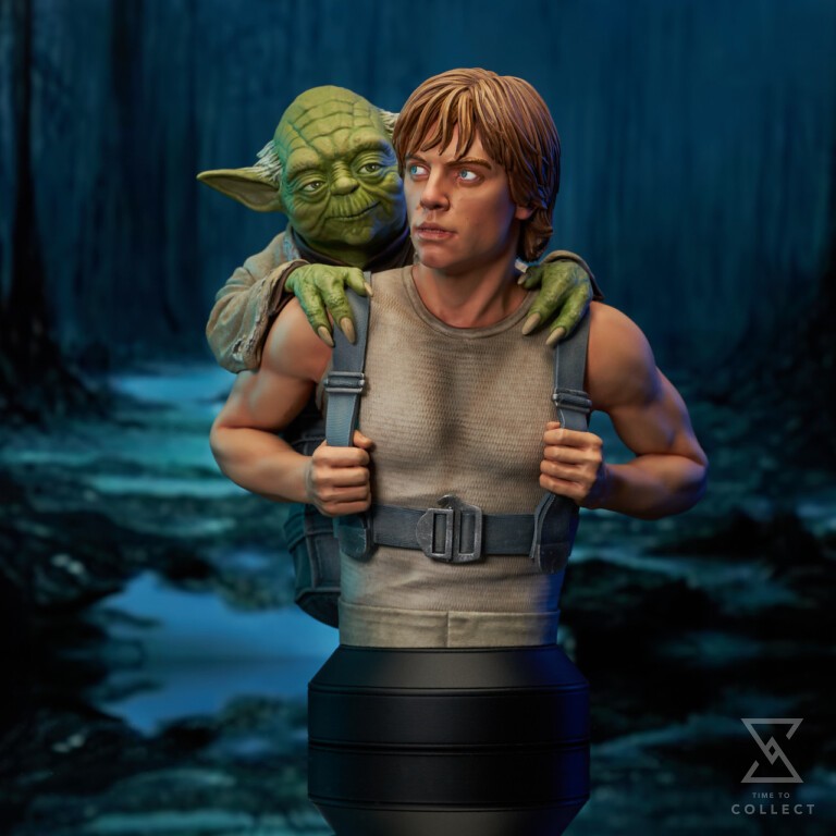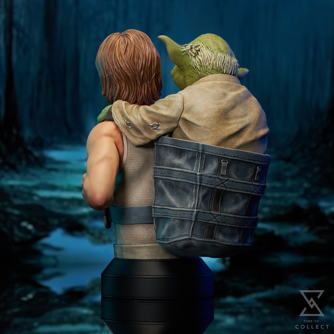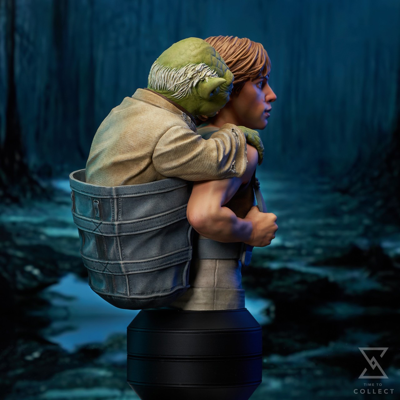 A Gentle Giant LTD release! “Do or do not! There is no try!” You can almost hear Yoda delivering lessons to Luke Skywalker as you look at this 1/6 scale mini-bust of the pair training on Dagobah! With Yoda in Luke’s backpack, the duo measure 6 inches atop a black pedestal, and are limited to only 3,000 pieces. It comes packaged with a numbered certificate of authenticity in a full-color box.