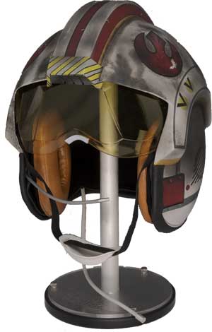 The original helmet was made from an APH-6B Vietnam era flight helmet used by the US Navy, circa 1969. This helmet included the dual visor cover. A ridge was also added over the top from front to back. The helmet was then cast in halves to make the master pattern and the X-wing pilot helmets were then vacuum formed from these patterns. Upon assembly, a strip of ABS was added to hide the parting line of the two halves.