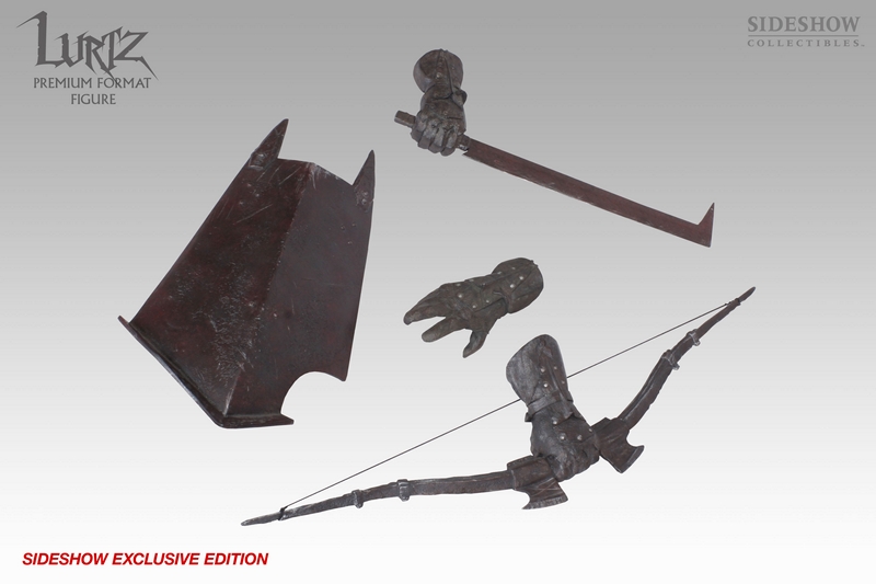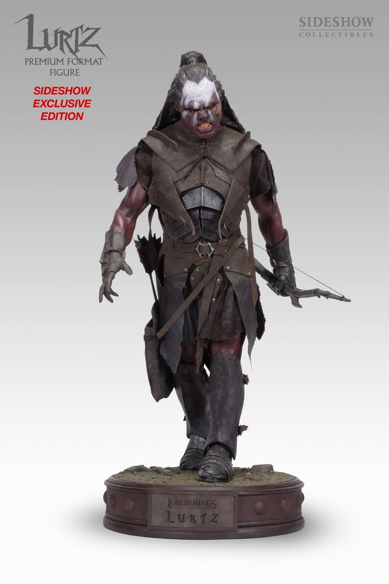 Lurtz is the inaugural piece in Sideshow Collectibles’ line of Premium Format Lord of the Rings figures. Captured mid-stride, Lurtz is intricately recreated in 1:4 scale stalking toward his intended prey, sword and shield in hand. The sculpture perfectly conveys the malice and single-minded purpose of Lurtz’ attack on the Fellowship. The figure is a blend of polystone and leatherwork, utilizing the best materials available to recreate every detail, from the wrinkled surface of his thick hide to the brutish but effective Uruk-hai armor. Lurtz stands tall on an environmental display base, with a forest floor top surfacing, front nameplate, and edition size information printed on the base bottom.